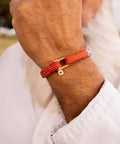 Pig & Hen 'Viscious Vik' Coral Red Rope Bracelet with Gold Shackle