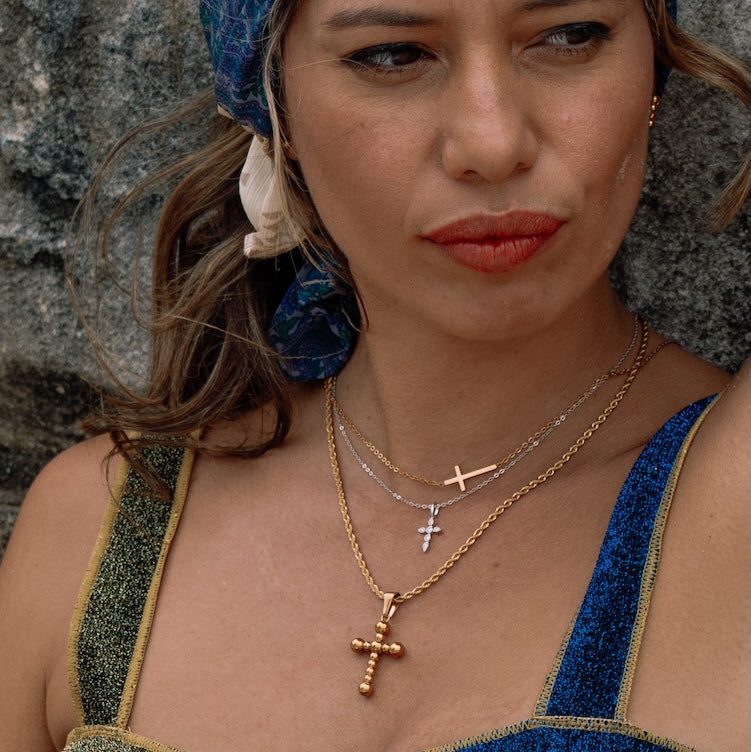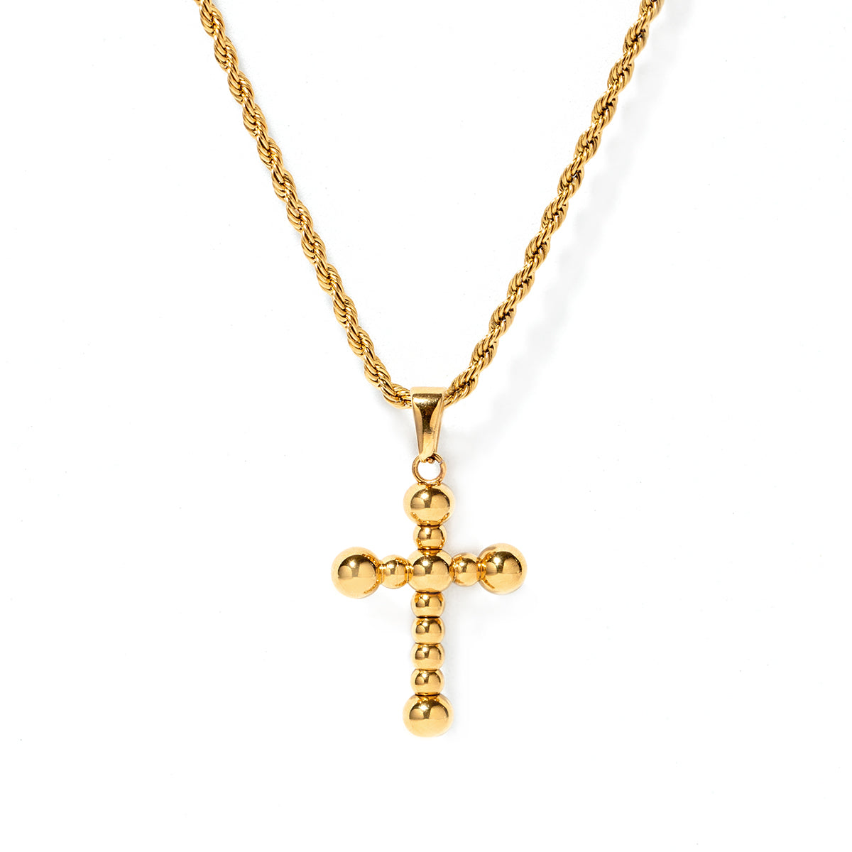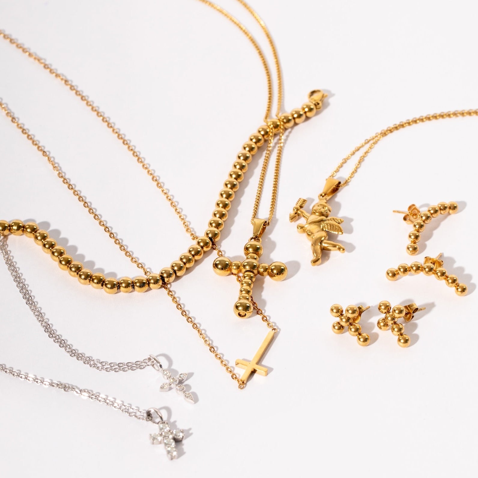 Make a statement with our Precious Cross Pendant! A timeless gift or perfect addition to your own wardrobe. Precious offers an extra dose of style and sophistication as it is uniquely crafted with a 12 gold ball design, and an alternative shape to the regular cross pendants out there. Designed to be the ultimate accessory for modern day.