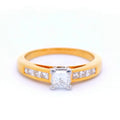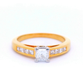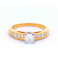 KK011 18CT Y/G 1X.36CT CNR SET PRINCESS CUT DIA RING & CHANNEL SET SHOULD