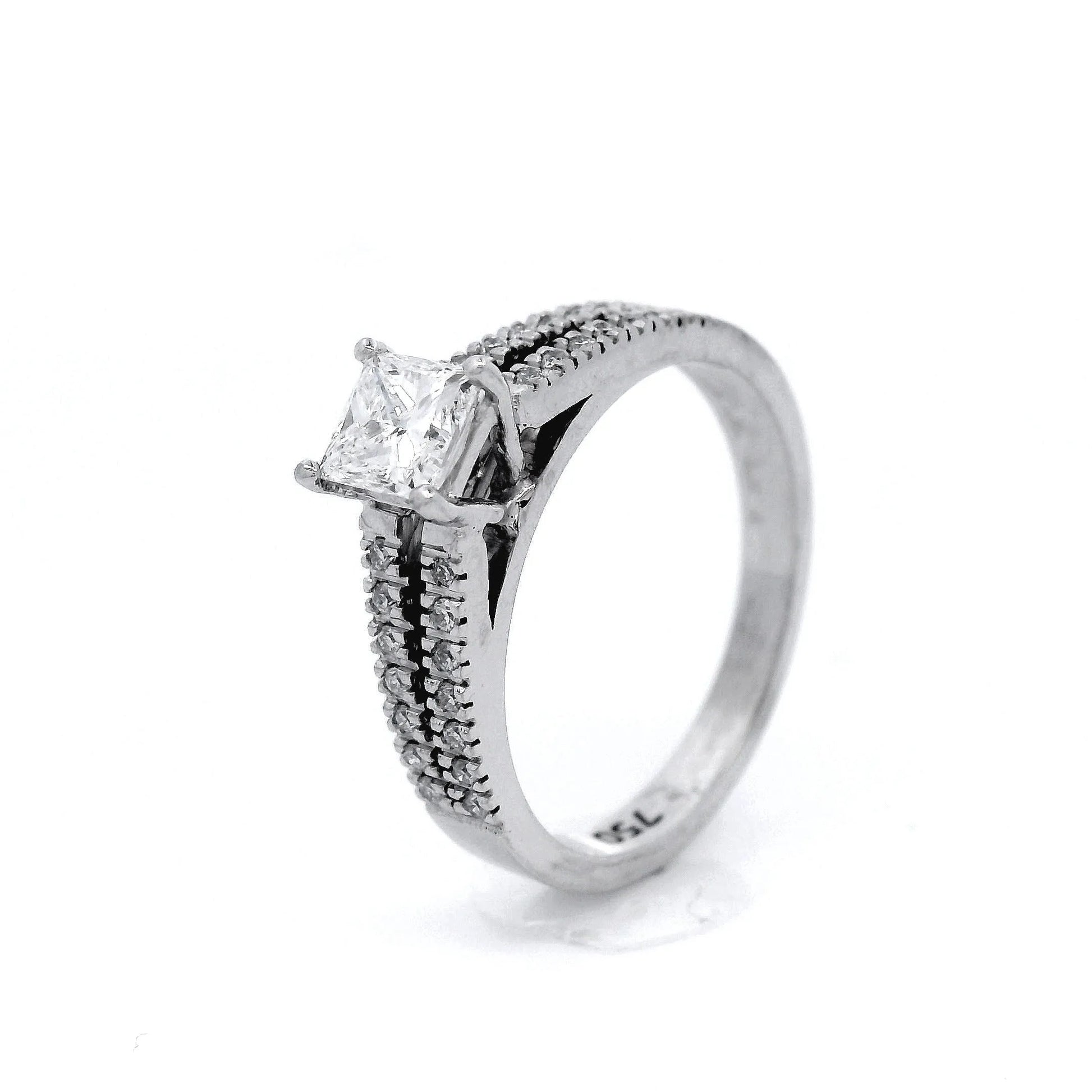 18 CARAT WHITE GOLD Dia SET RING .51CT PRINCESS 28=.36CT