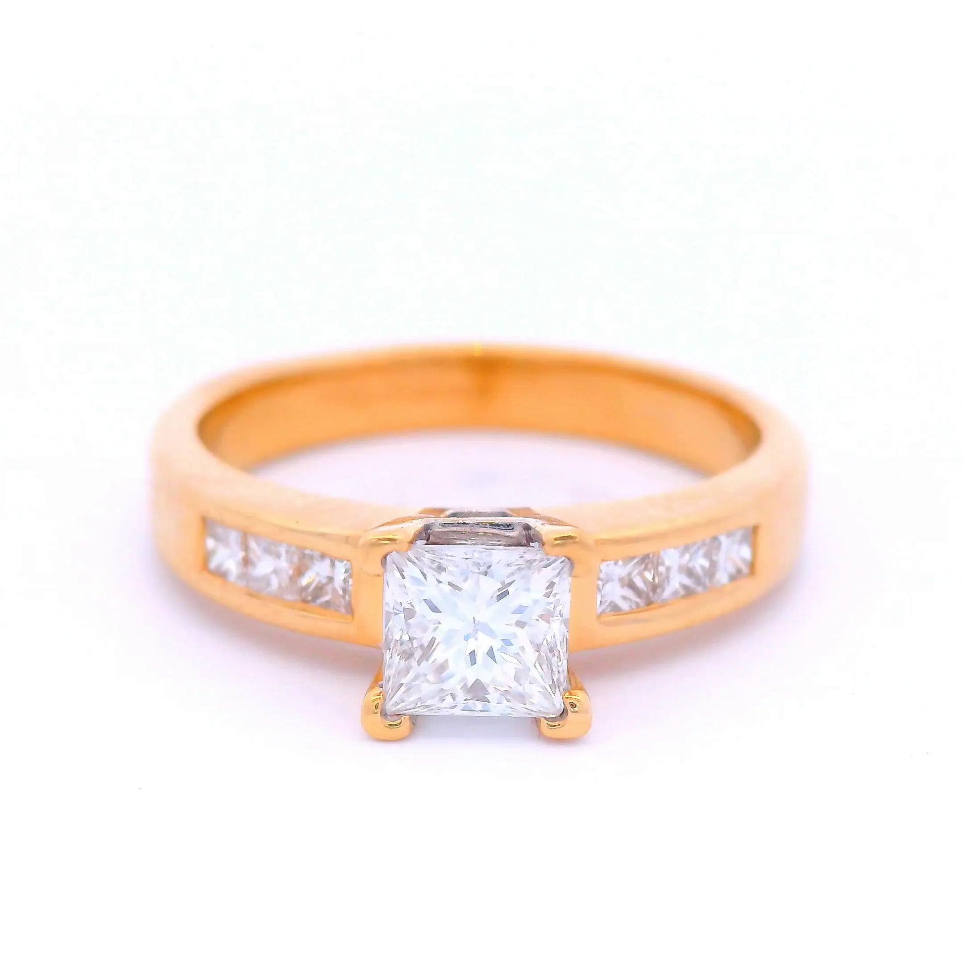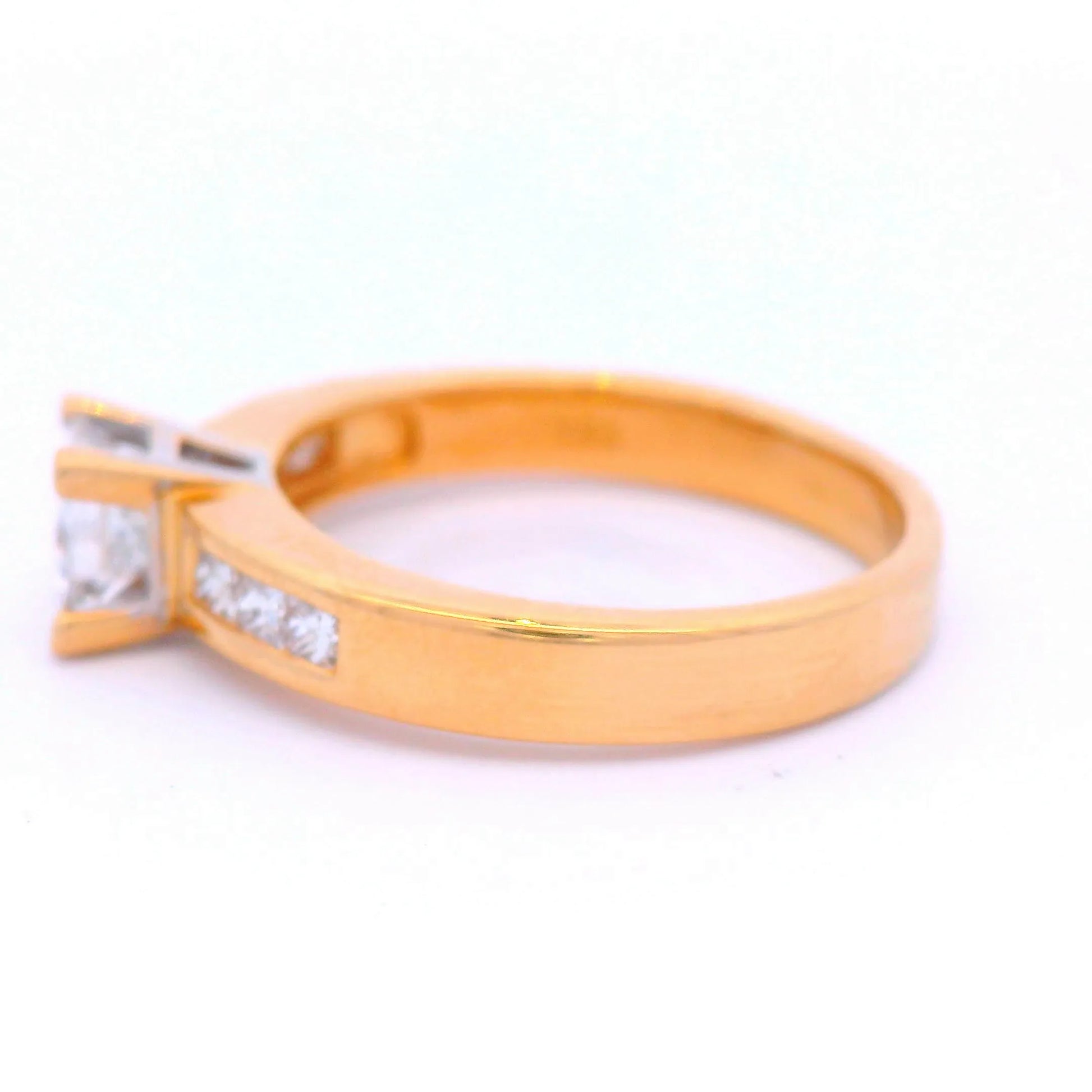 Princess Cut Diamond Set in Yellow Gold with Princess Cut Shoulders