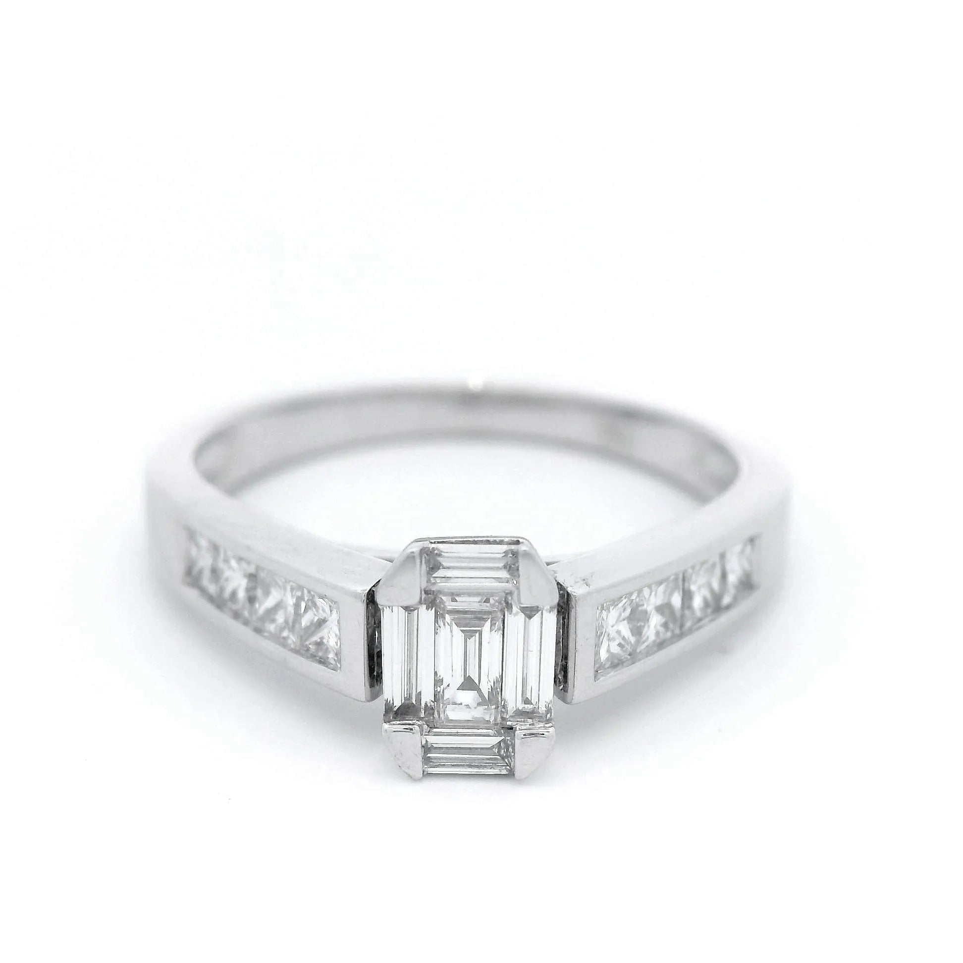18 CT W/G EMERALD AND PRINCESS CUT DIA