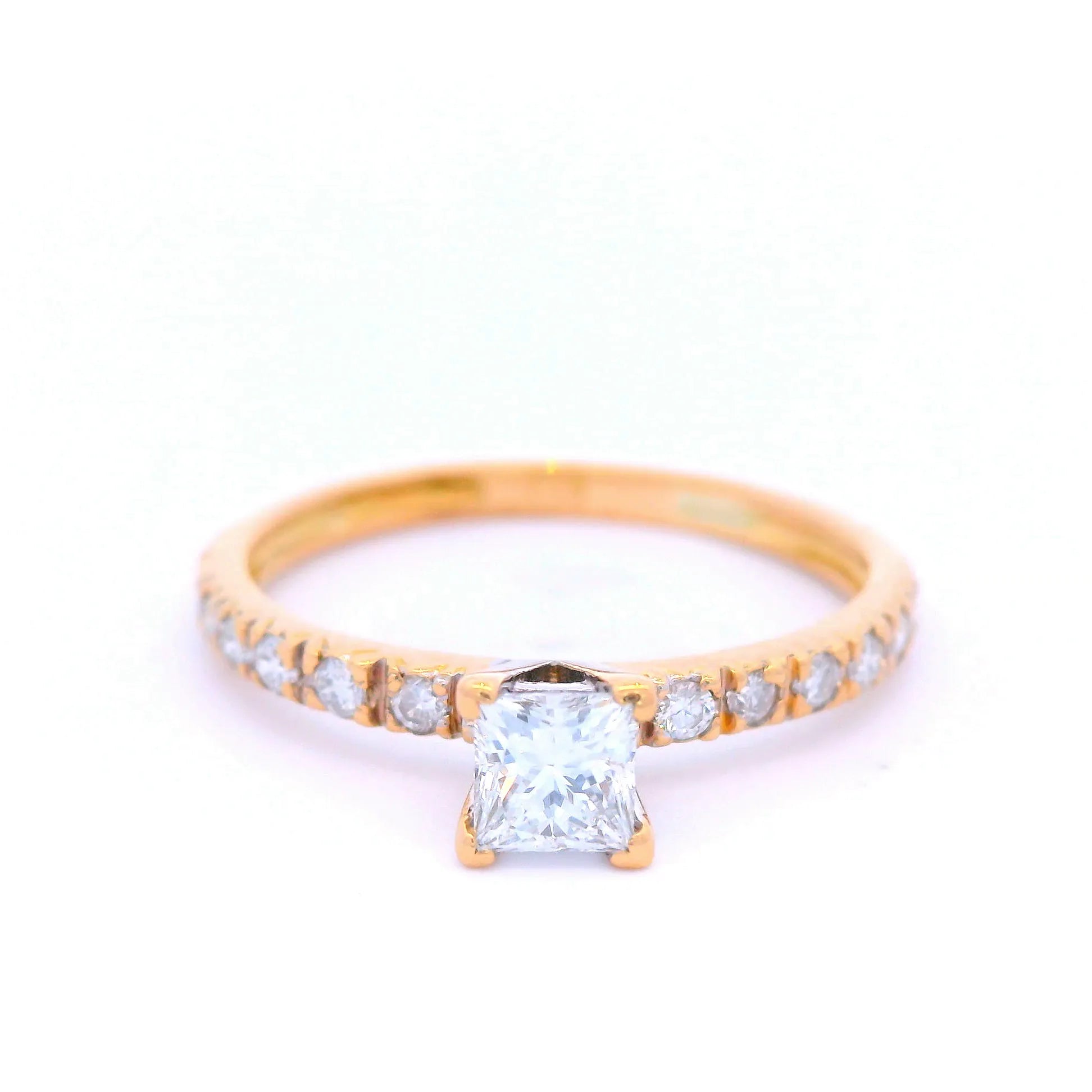 Princess Cut Diamond with Pave Shoulders in Yellow Gold
