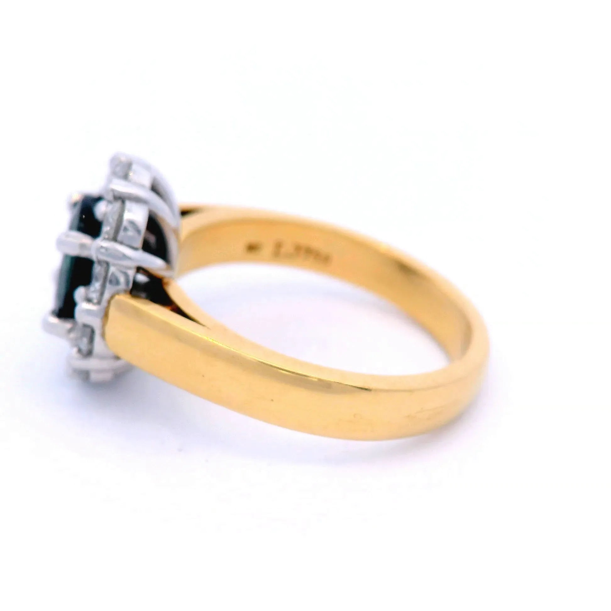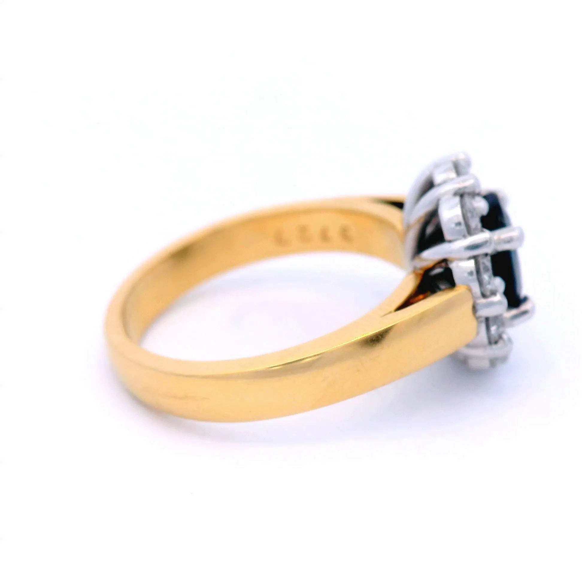 Princess Diana Sapphire with Halo Diamond Dress Ring Set in Yellow Gold