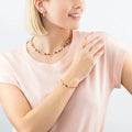 Natural carnelian, mother-of-pearl and rhinestone rondelles, with gold plated stainless steel create these beautiful understated handmade earrings.