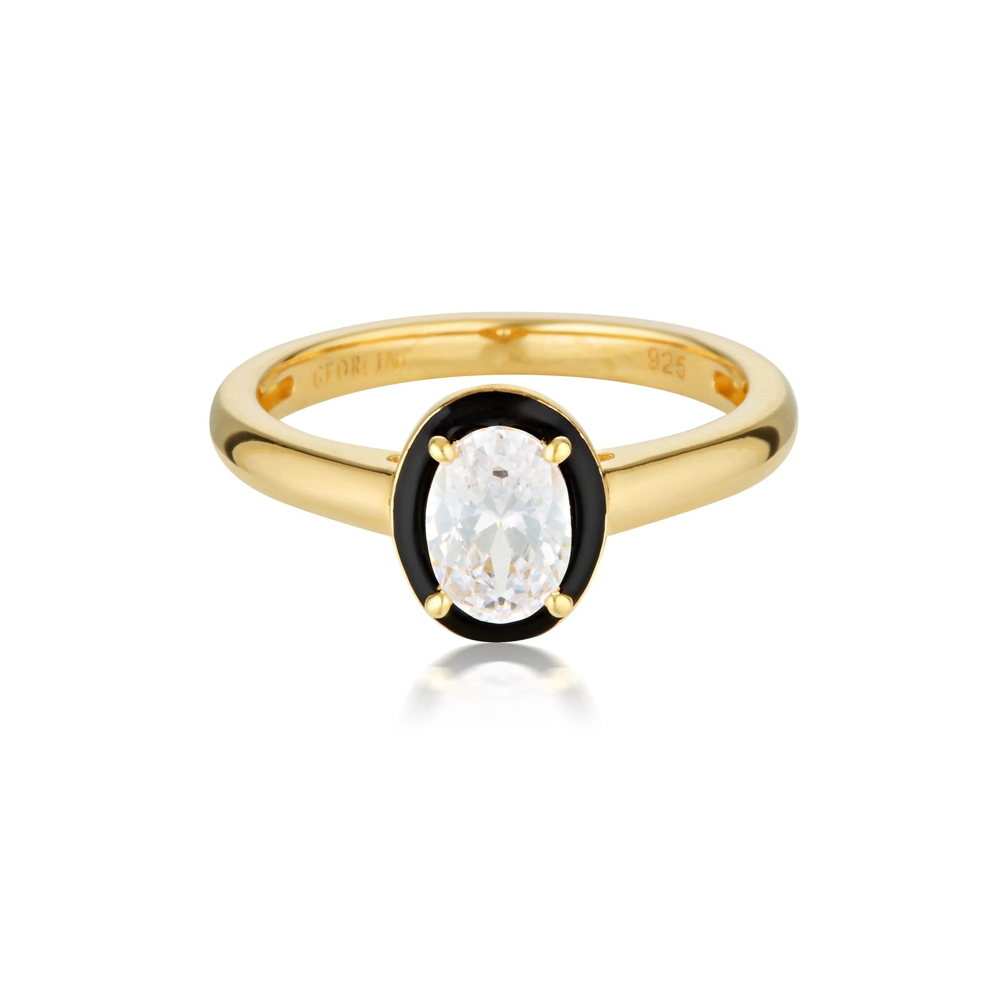 REFLECTION OVAL RING GOLD & BLACK ENAMEL