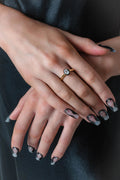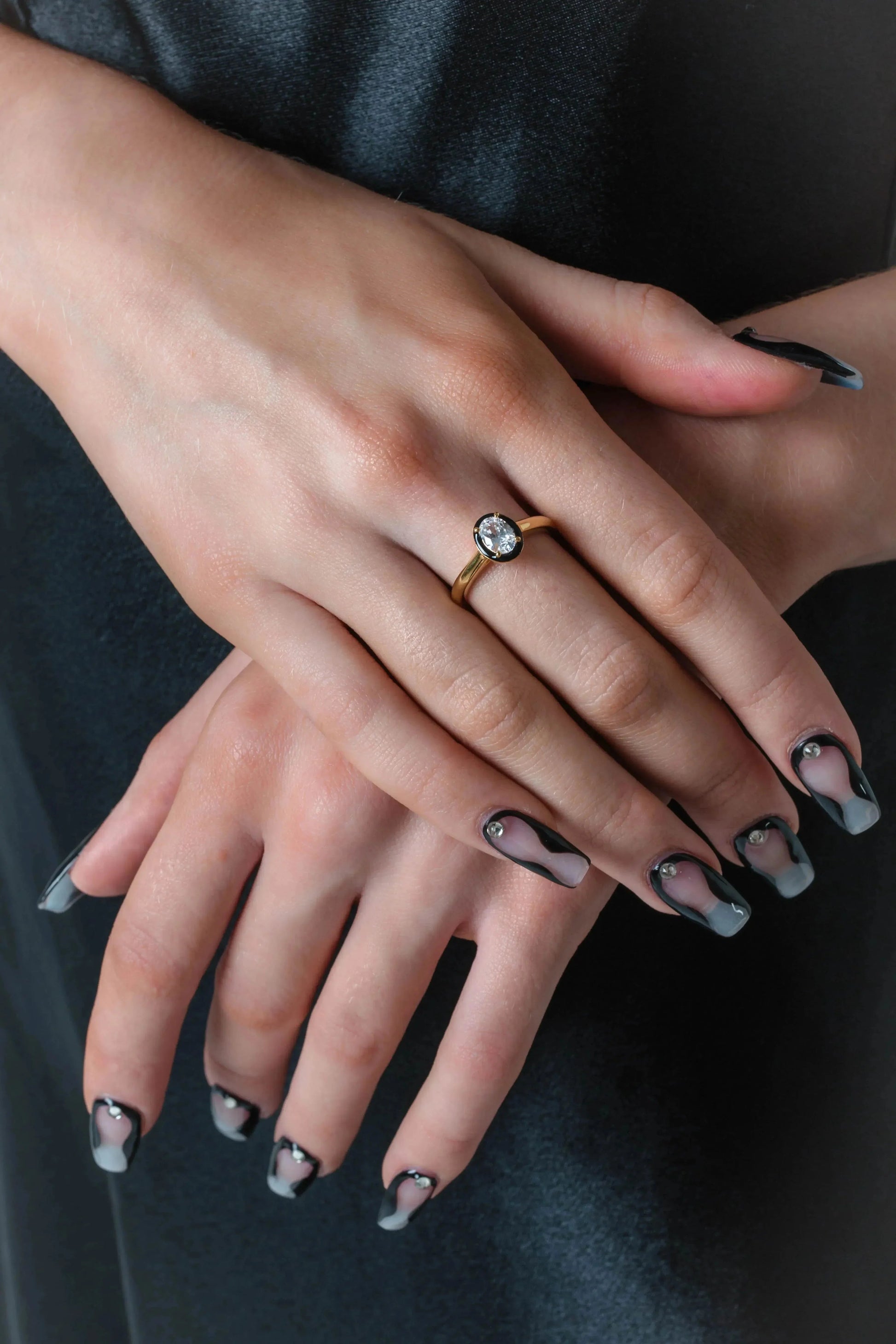 The Reflection Oval Ring by Georgini is a modern reinterpretation of a classic design. Featuring a striking 1ct e.q Oval Cubic Zirconia, encased in the finest black enamel, this piece makes a bold statement. Crafted from luxurious 18ct gold-plated 925 sterling silver, it combines sophistication with timeless appeal.