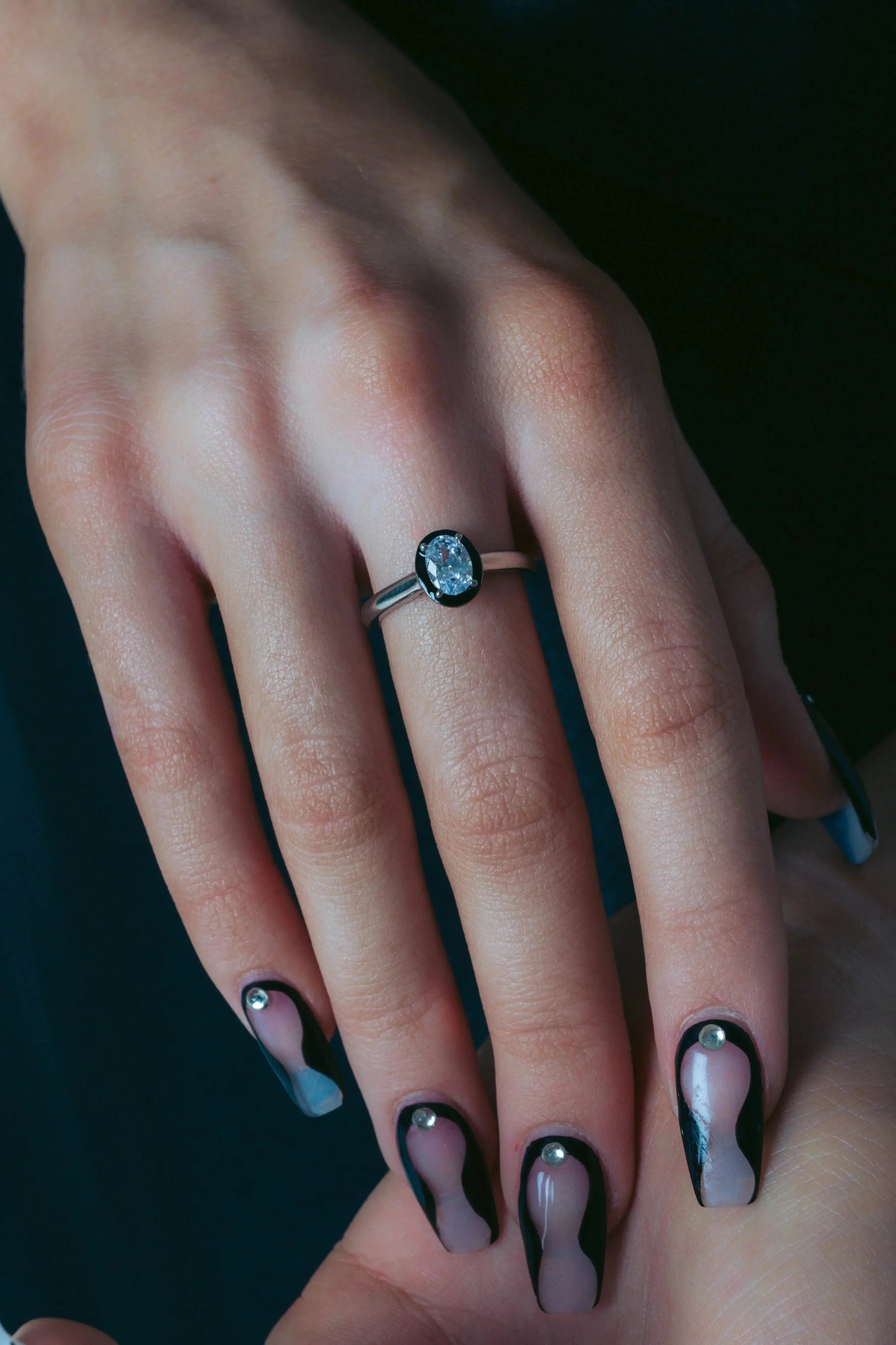 The Reflection Oval Ring by Georgini redefines elegance with a modern twist on a timeless design. Featuring a stunning 1ct e.q Oval Cubic Zirconia, this ring is encircled by premium black enamel for a sleek, bold look. Crafted from rhodium-plated 925 sterling silver, it exudes luxury and sophistication.