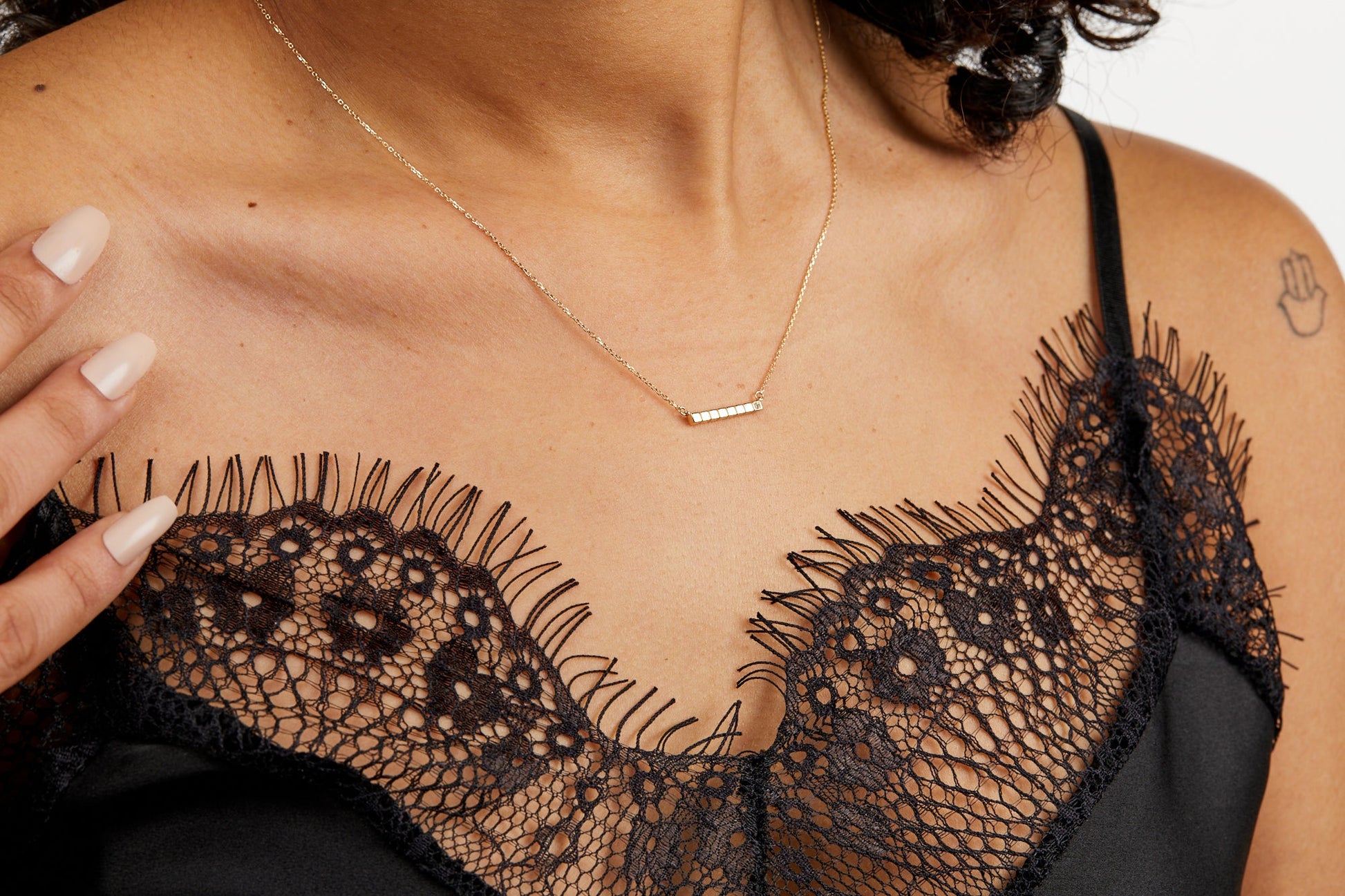 Inspired by the Roman columns found all throughout Rome the Roma necklace is a delicate yet detailed bar necklace. Its striking design provides the versatility of everyday wear either solo or with our other designs.