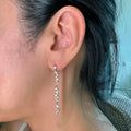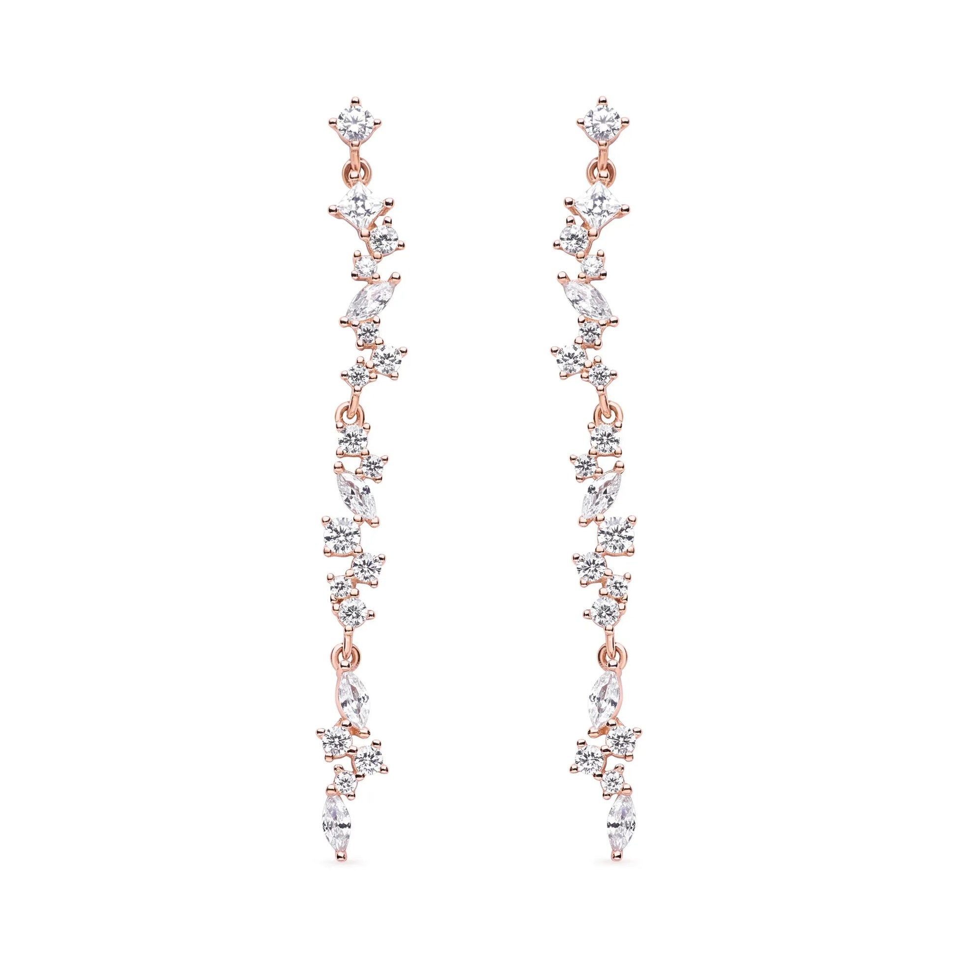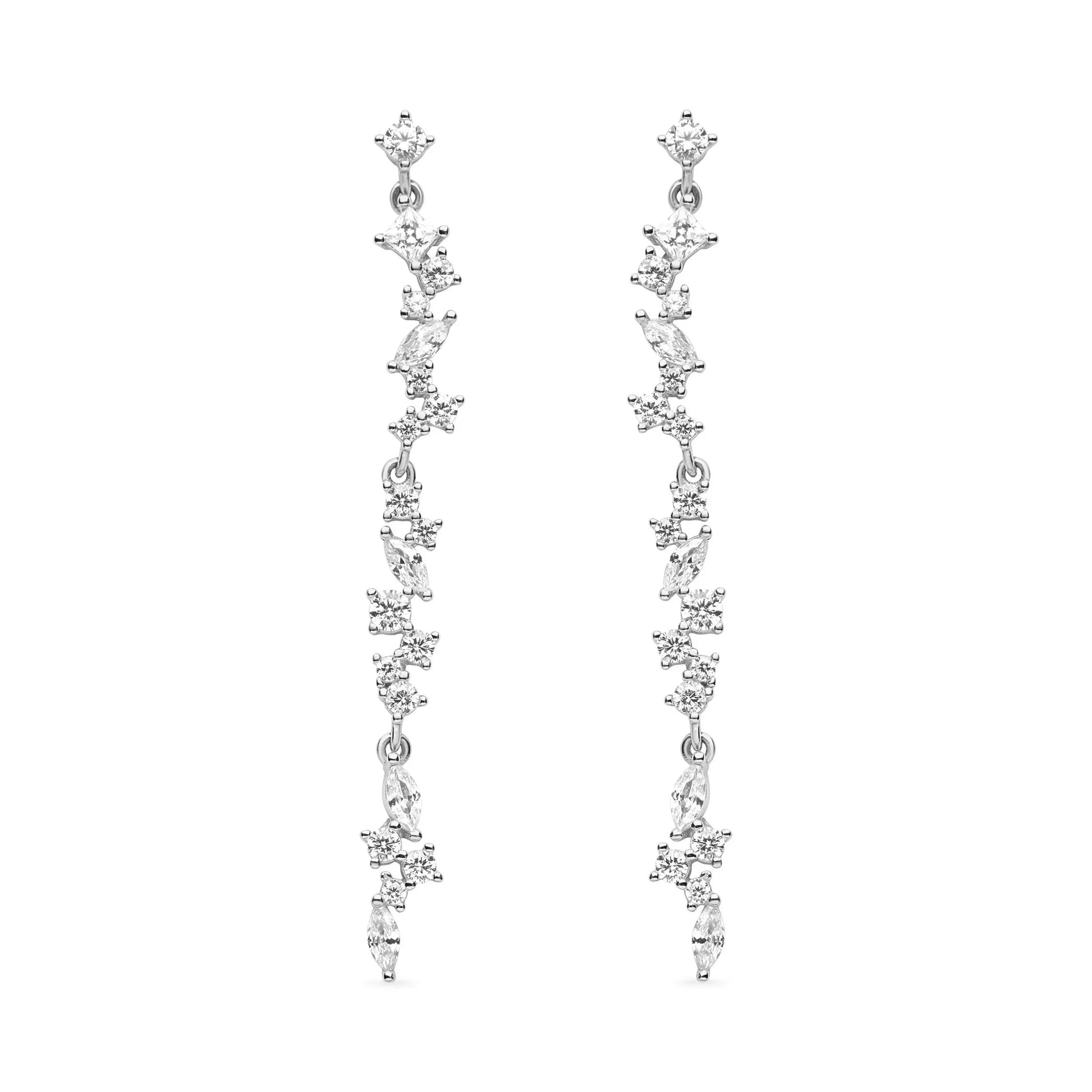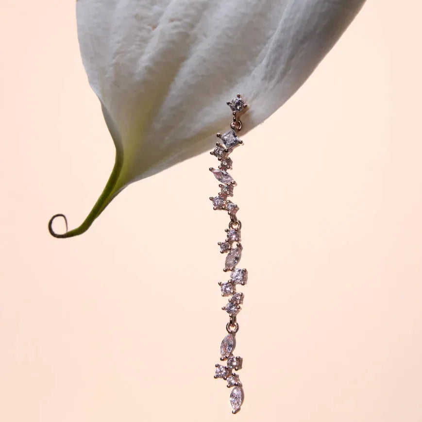Transform your look with these mesmerising cascading drop earrings that dance with every movement. Each earring features a graceful waterfall of brilliant cubic zirconia stones in graduated sizes, creating an enchanting linear design that catches and reflects light from every angle—like wearing liquid starlight.