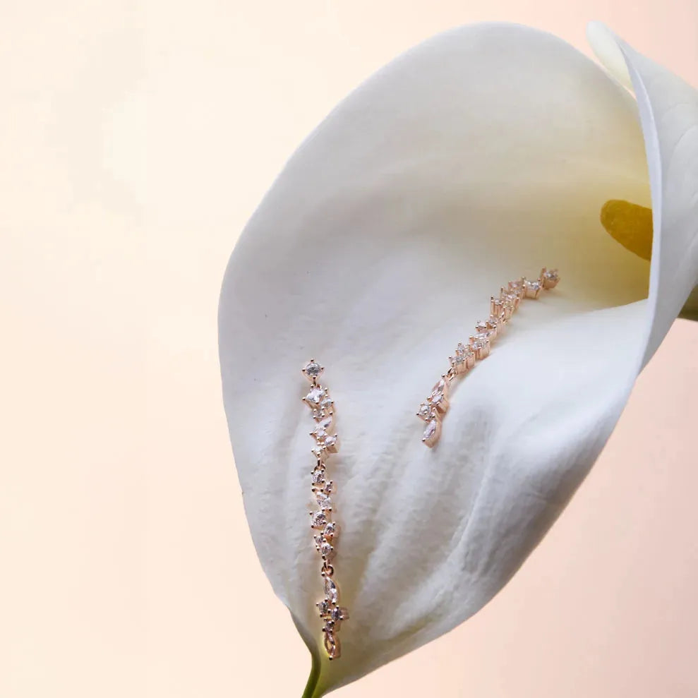 - Cascading Brilliance: Linear waterfall design featuring graduated cubic zirconia stones that create mesmerising movement and maximum light reflection with every turn of your head