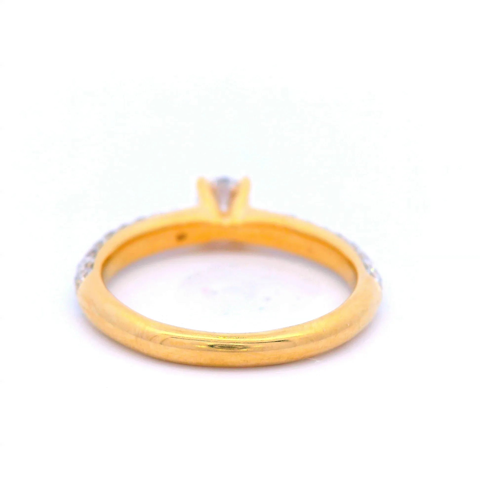 Round Brilliant Cut Diamond Ring with Pave Shoulder Stones