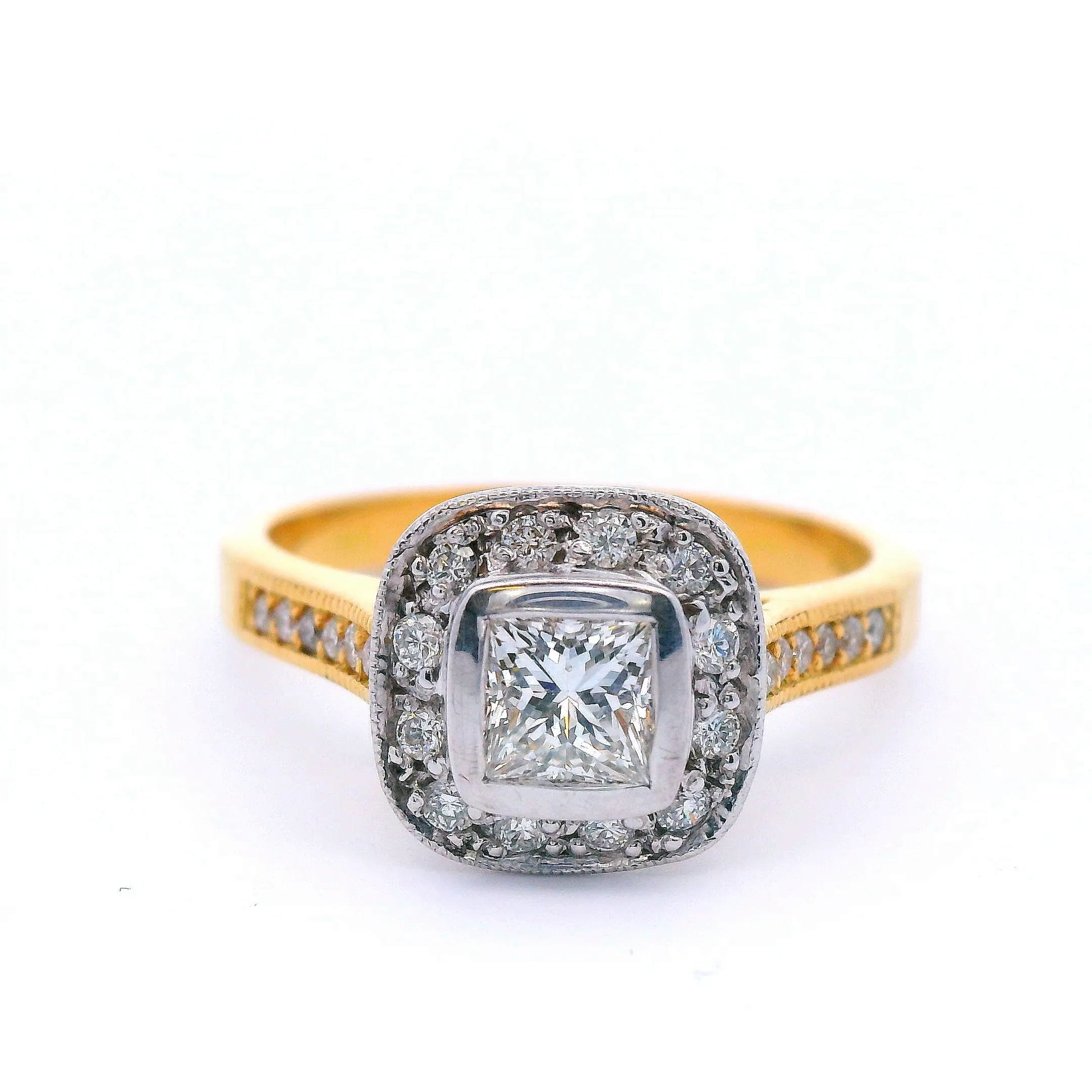 18CT Y/W/G .42 P/CUT 24=.25CT RBC GH/SI DIA RING