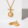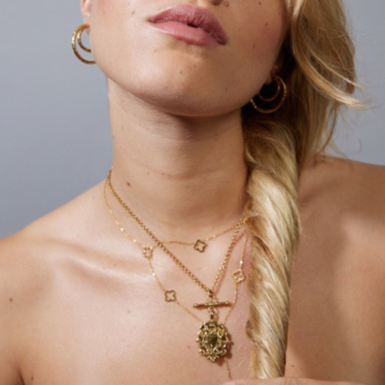 This all one in piece was designed to emulate iconic royal anniversary pieces given to princesses and queens by princes and kings over history. Unique to us and crafted with quality and care you can wear The Royal Necklace & Pendant day and night and enjoy how it instantly lifts any item of clothing and gets noticed by everyone. Pieces like this in solid gold start at $5,000 upwards. Enjoy ours for a fraction of that cost yet still have it forever. Waterproof, Tarnish proof. Allergy safe. 18K Gold coated luxury. Don't forget to check out our matching earrings too!