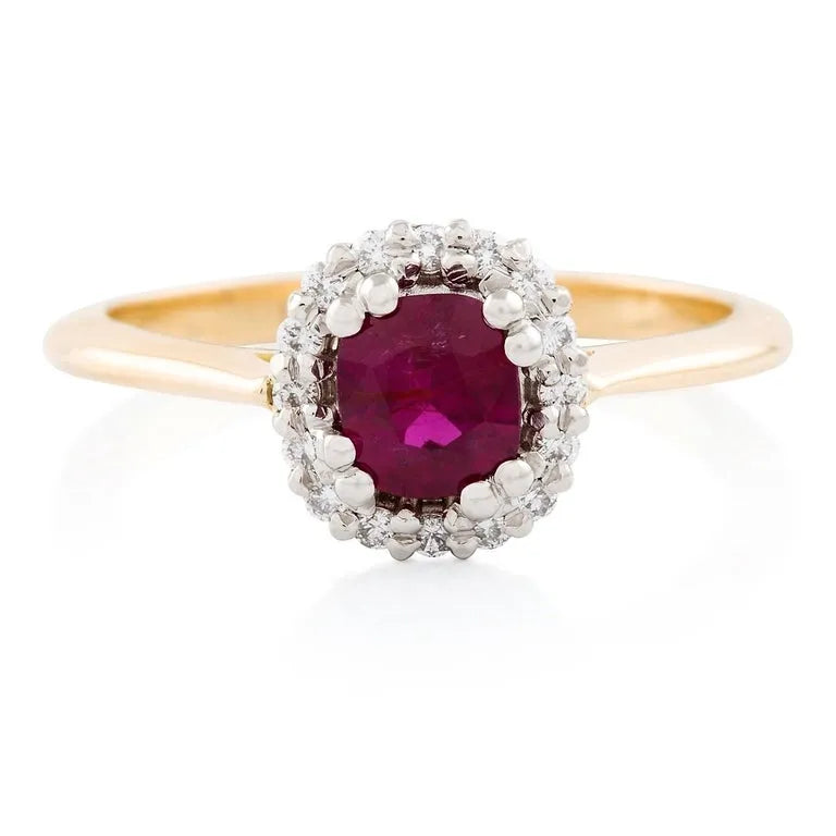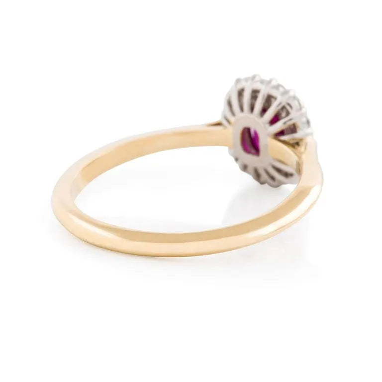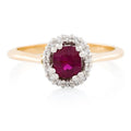 Platinum and 18 Carat Yellow Gold Cushion Cut Ruby and Diamond Cluster Engagement Ring