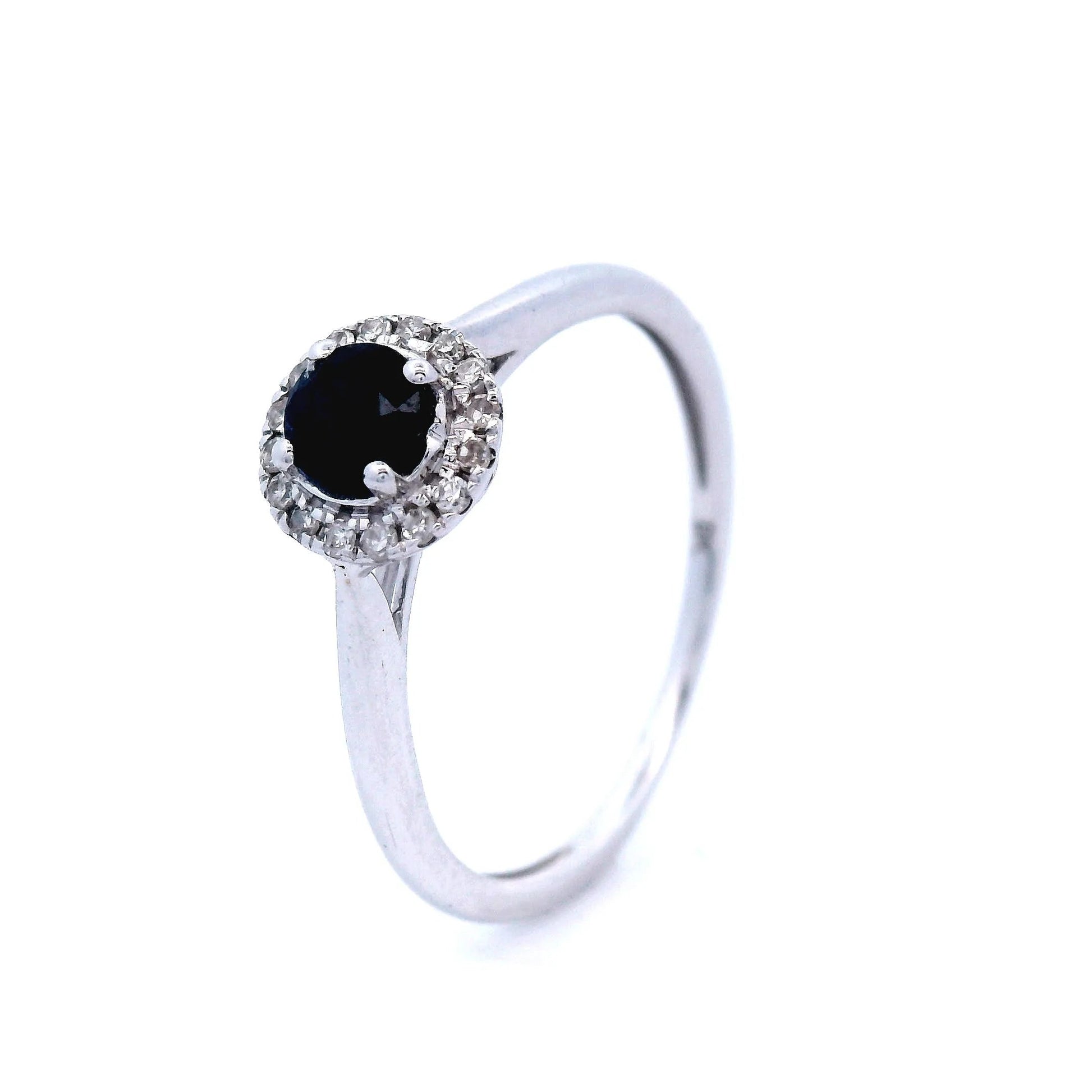 Sapphire and Diamond Halo Dress Ring in White Gold