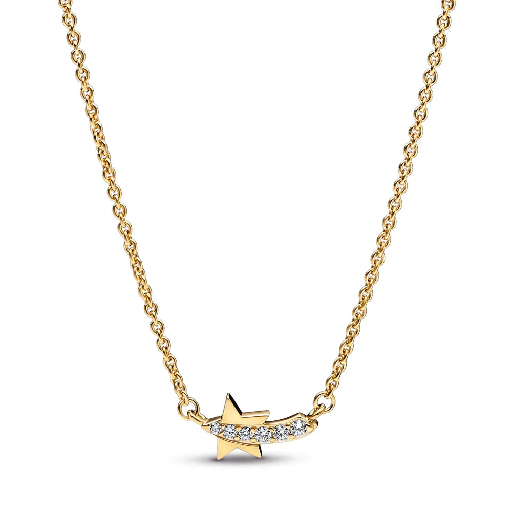 Shooting star 14k gold-plated collier with clear cubic zirconia