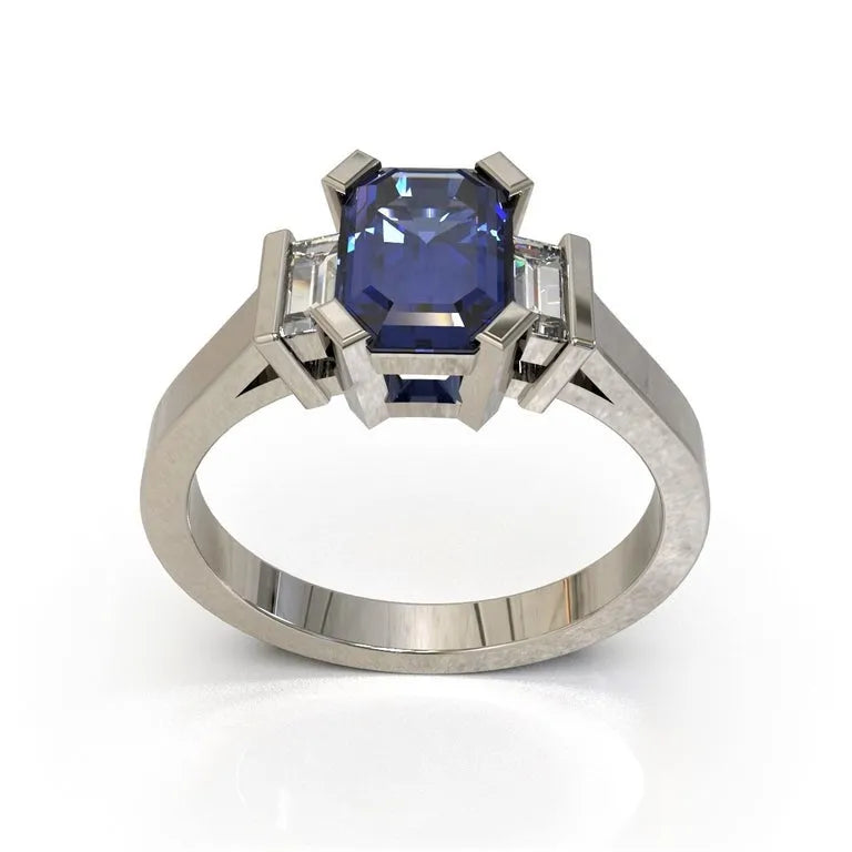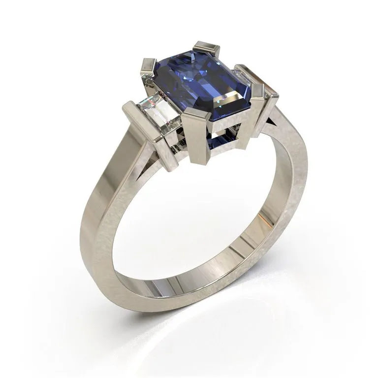 1.96 Carat Emerald Cut Ceylon Sapphire and Diamond platinum Ring