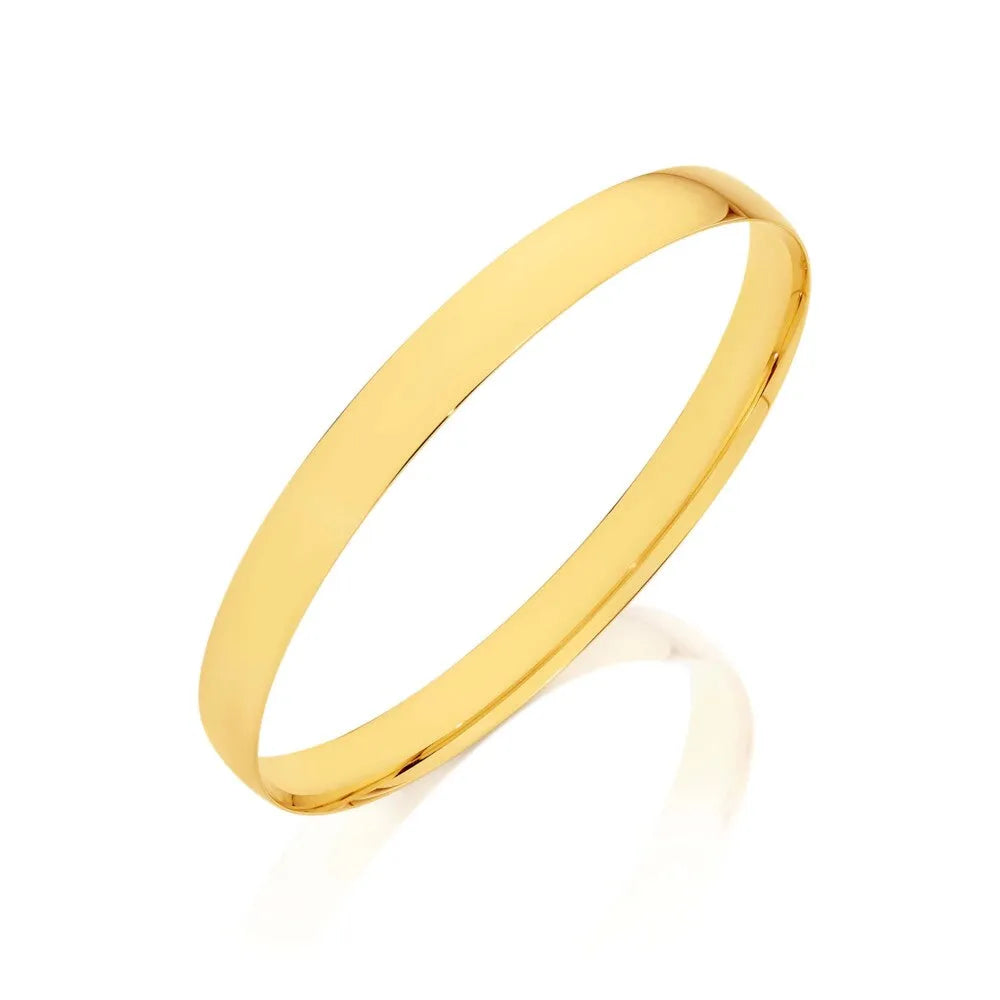 Solid 8mm Wide 65mm Golf Bangle in 9 Carat Yellow Gold. Lightweight.