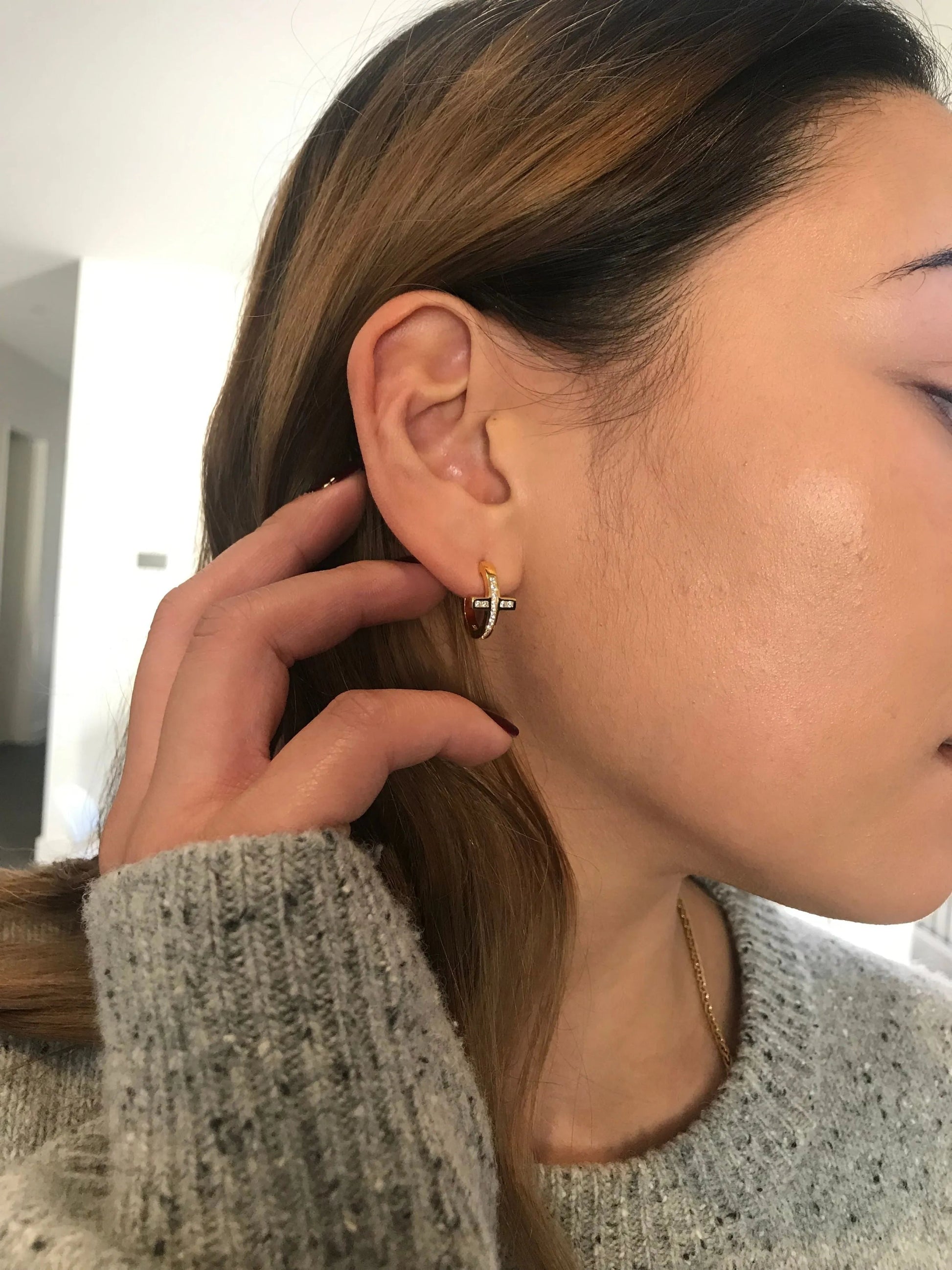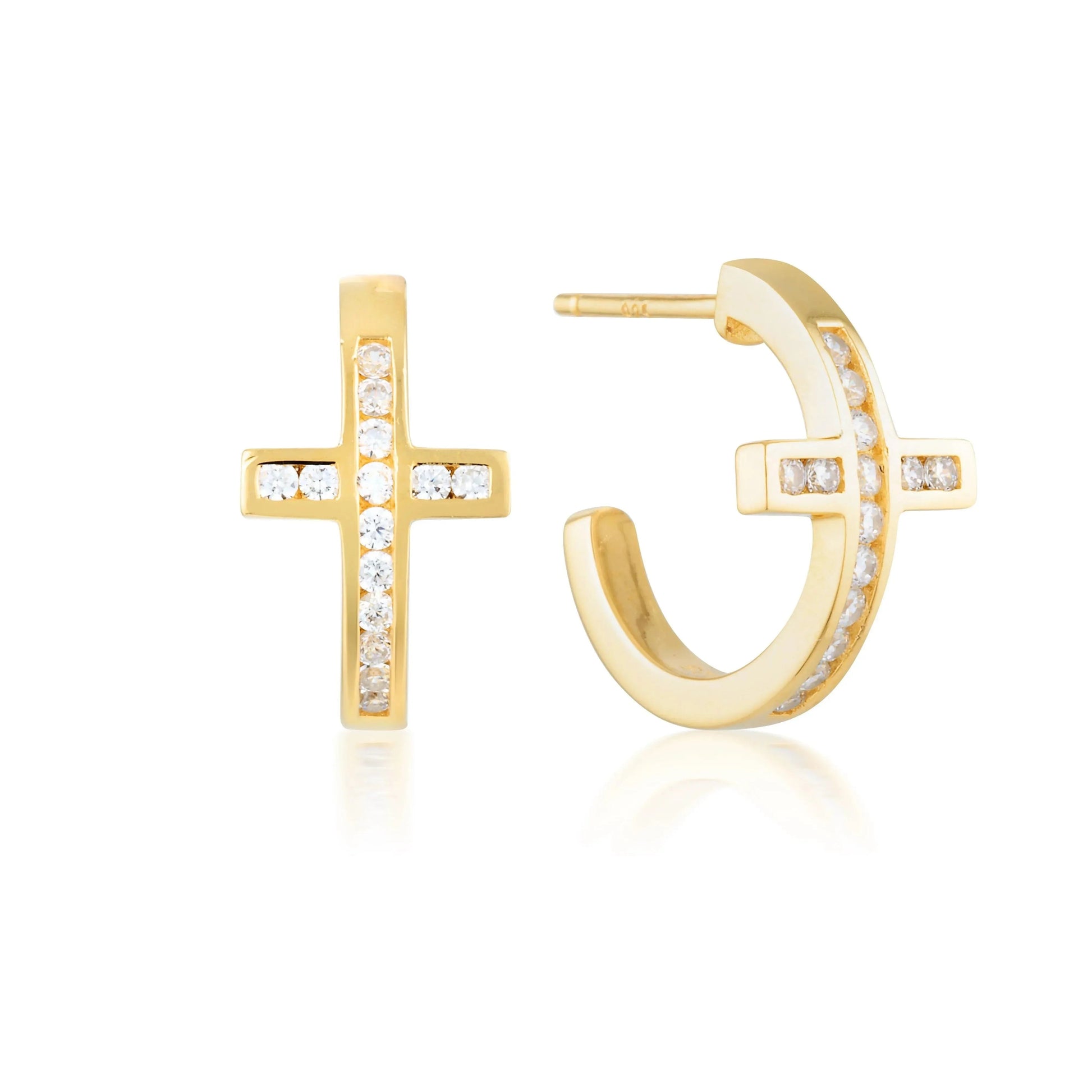 The Spiritus Gold Cross Hoop Earring redefines classic hoops with a wrap cross design and high-shine finish, offering a bold and elegant statement.
