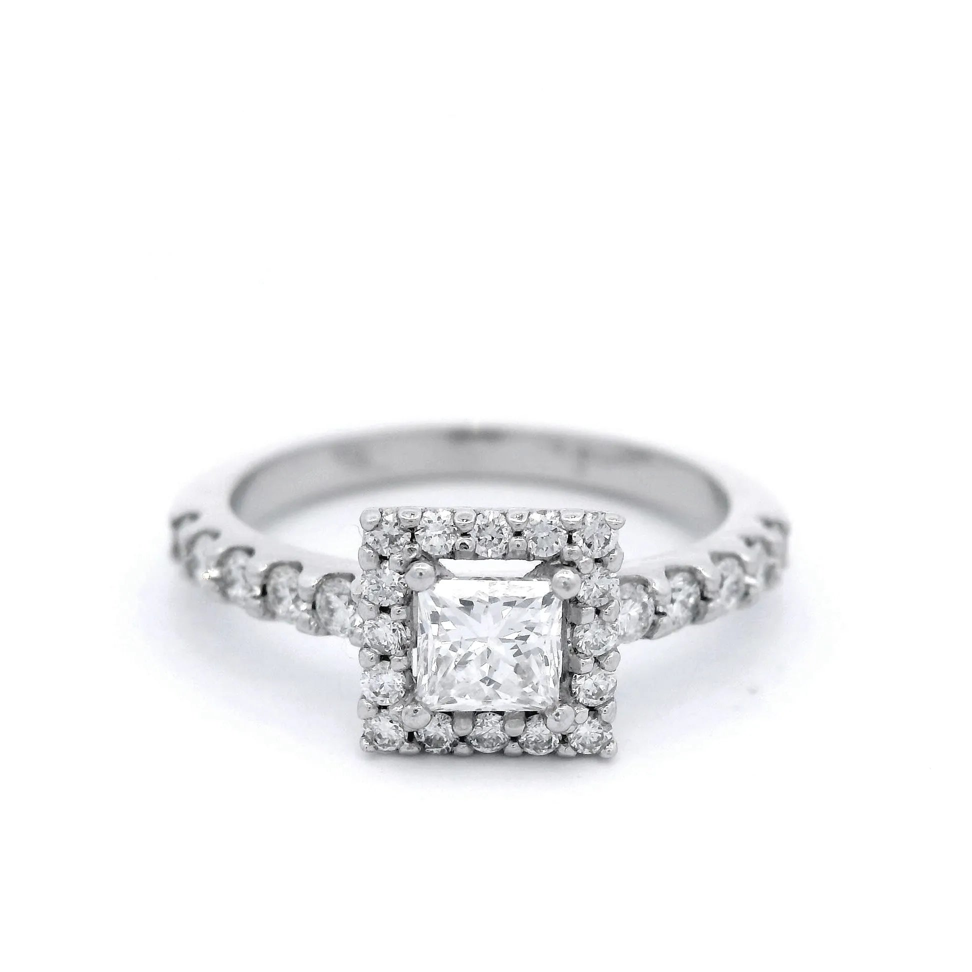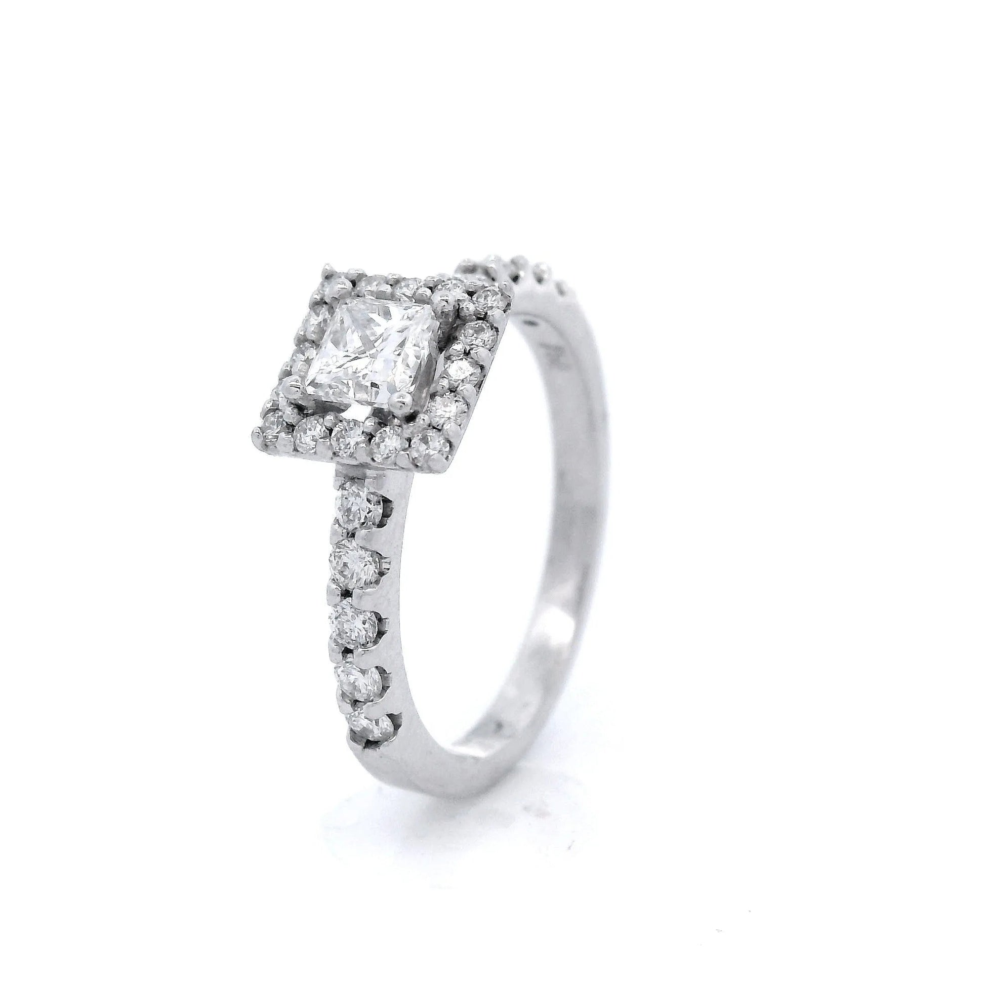 Square Shaped Diamond with Shoulder Set in White Gold