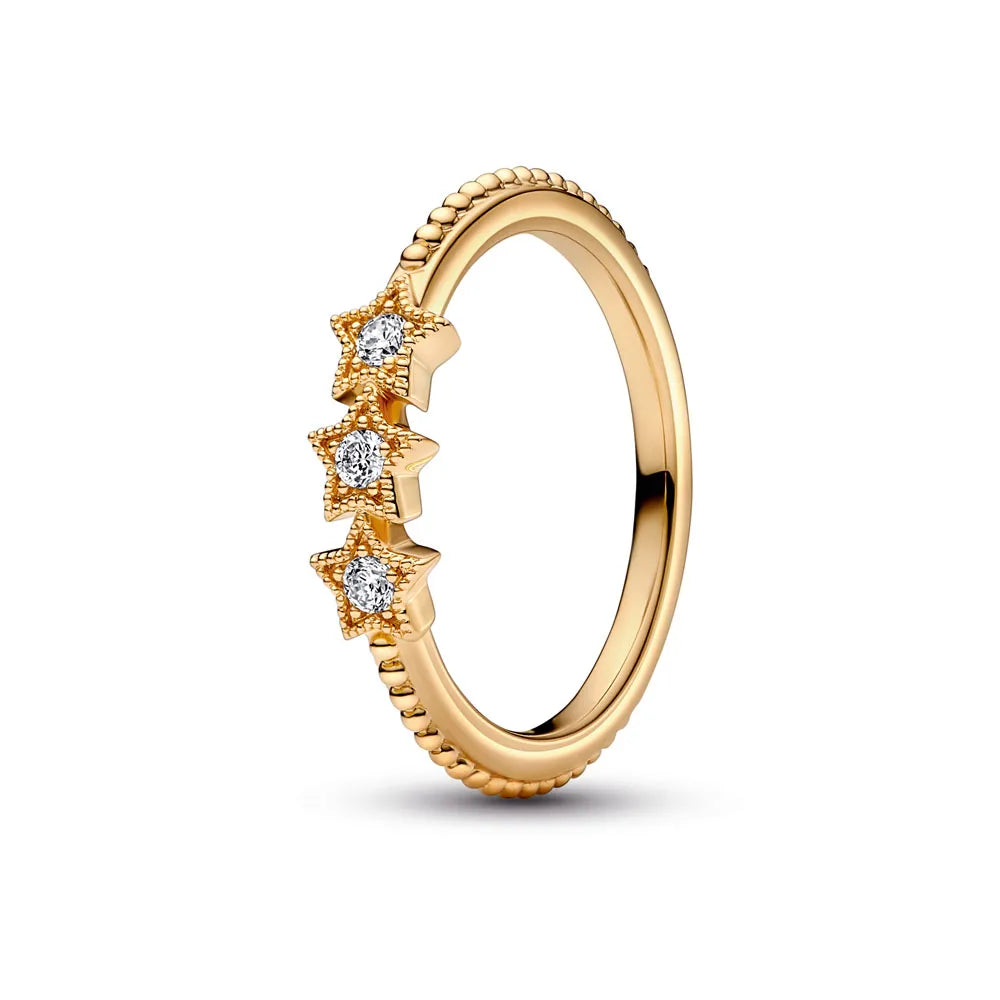 Stars 14k gold-plated ring with clear cubic zirconia