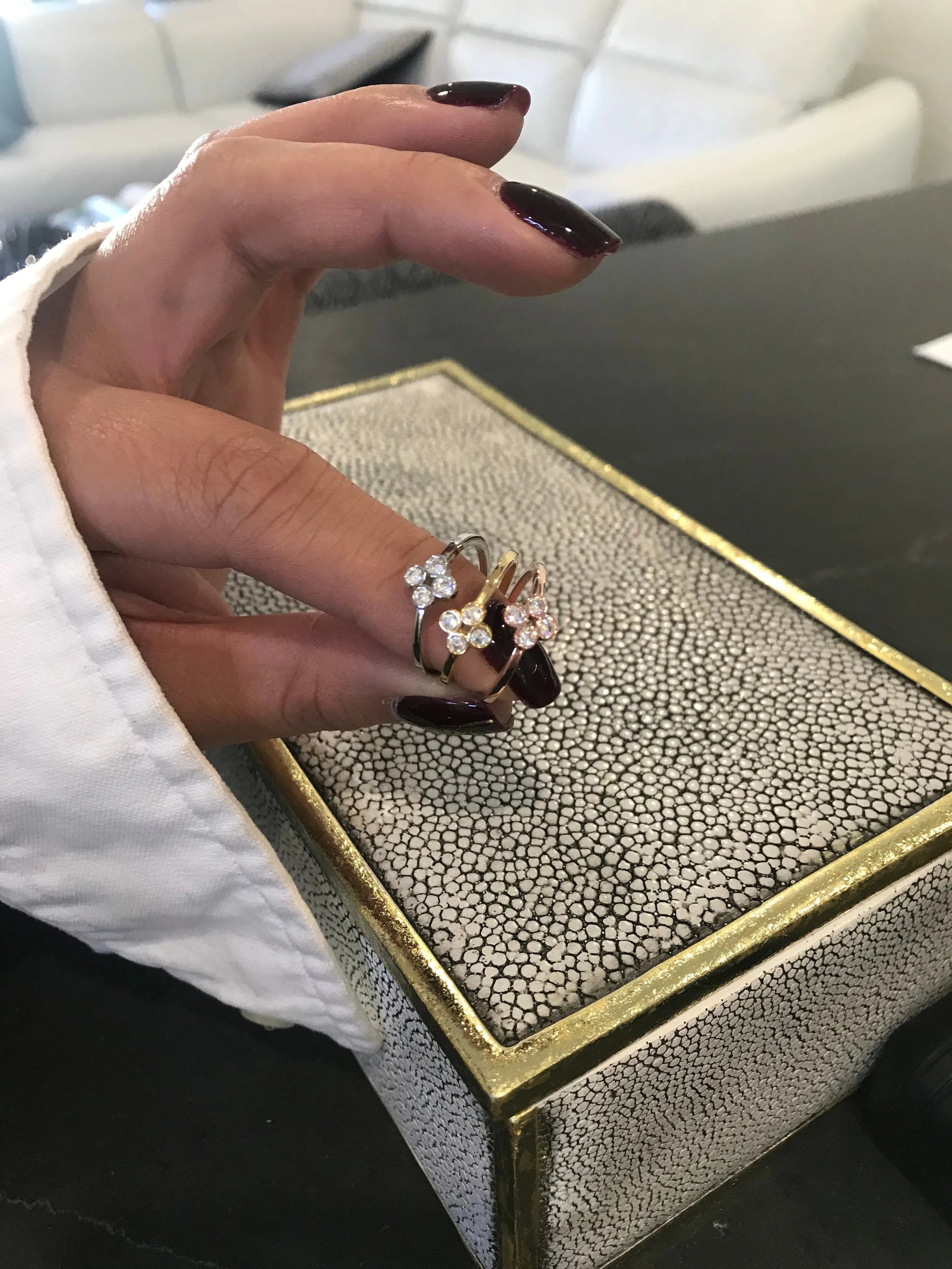 | Setting | Sleek silver setting |