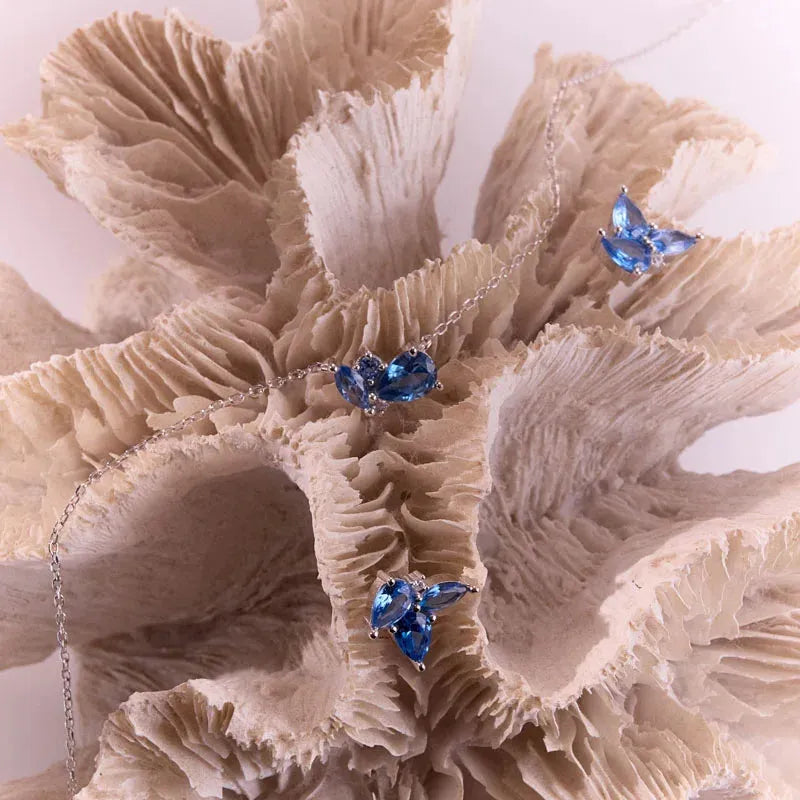 - Premium Blue Topaz Stones: Features genuine marquise-cut blue topaz gemstones with exceptional clarity and vibrant azure color that radiates brilliance