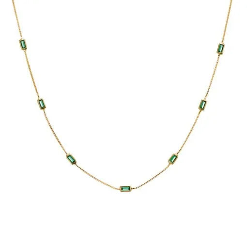 SS GP fine box chain necklace with multi baguette set emerald CZ 45cm