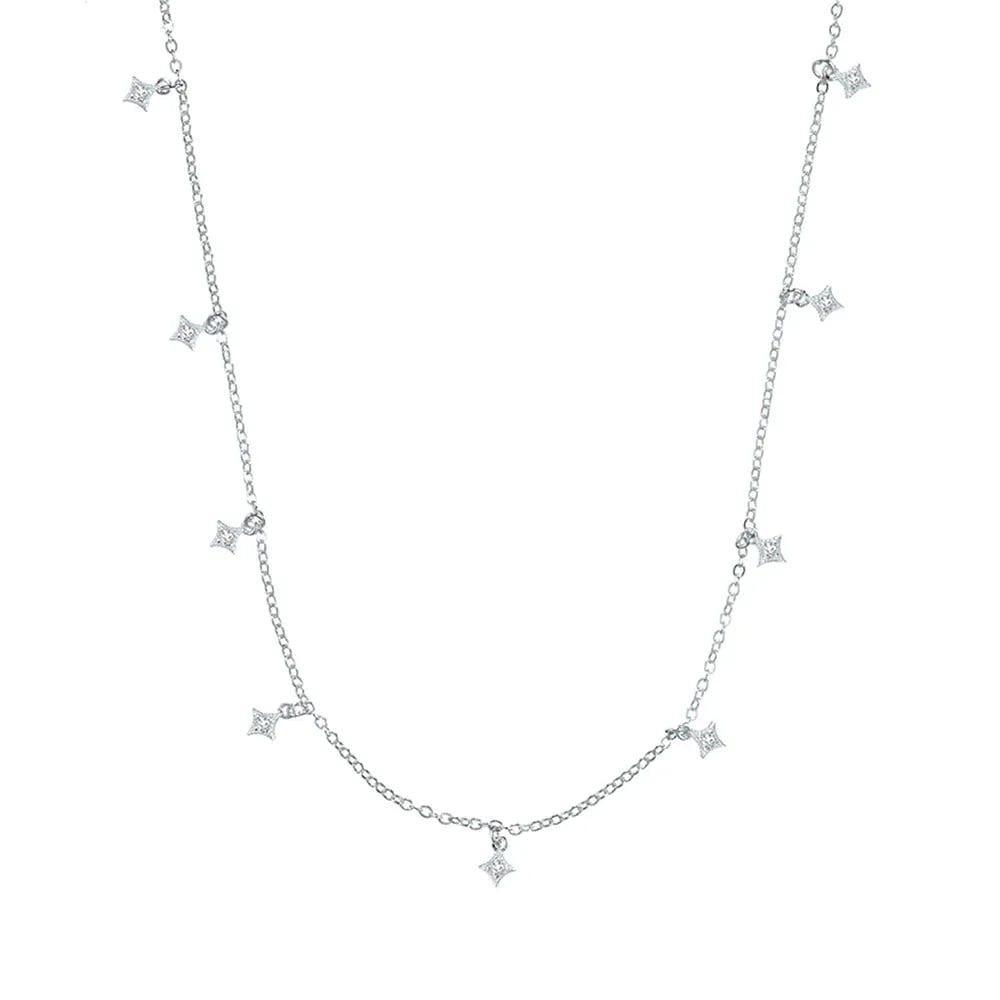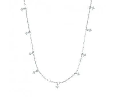 Sterling Silver Necklace With Petite CZ Charms 42 + 3cm