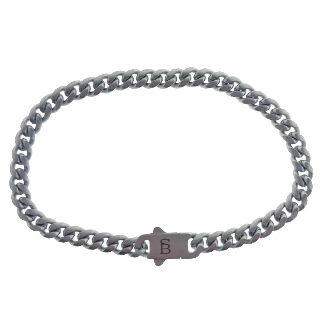 Svelte Stephen - Matte Silver- Cuban Link Stainless Steel Bracelet - Medium