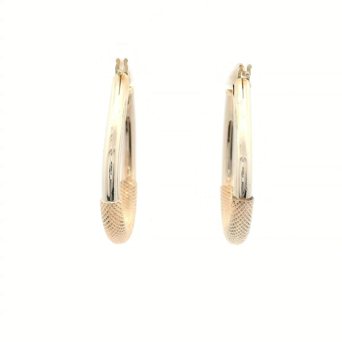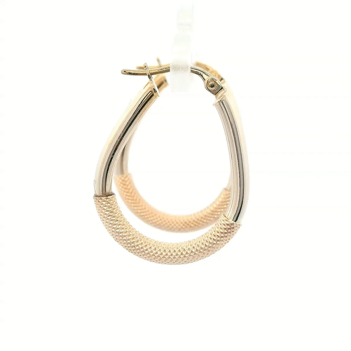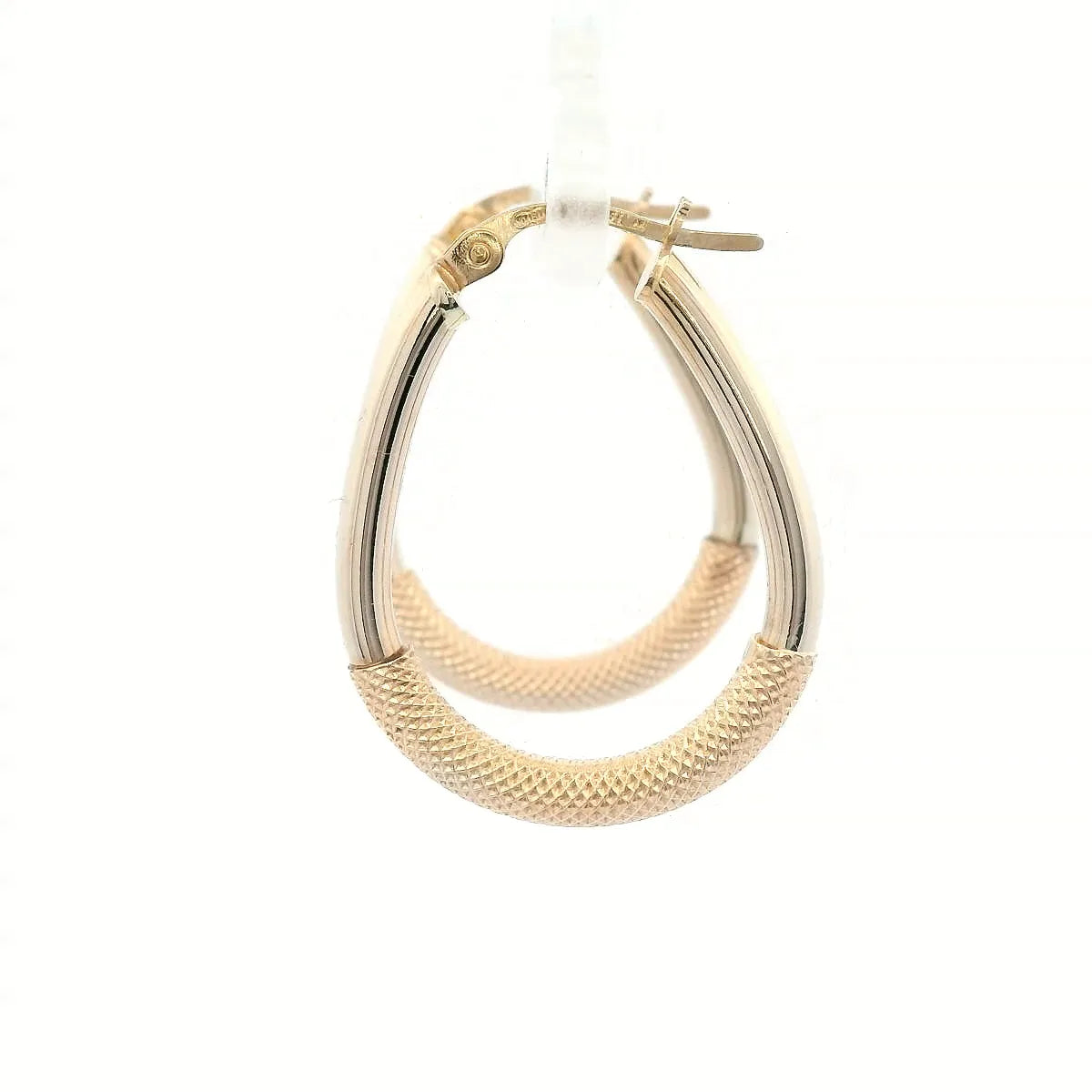 Tear Drop Hoop Earrings with etching on bottom third in 9 Carat Yellow Gold. 21mm wide. 27mm high. 1.6 grams.