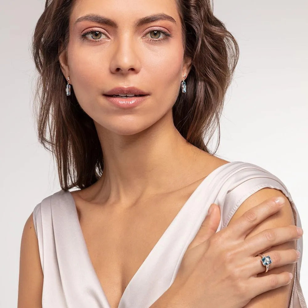 Magic aquamarine earrings in which the sky-blue colour of the octagon-cut faceted stone harmonises perfectly with the inspiration of the star design.