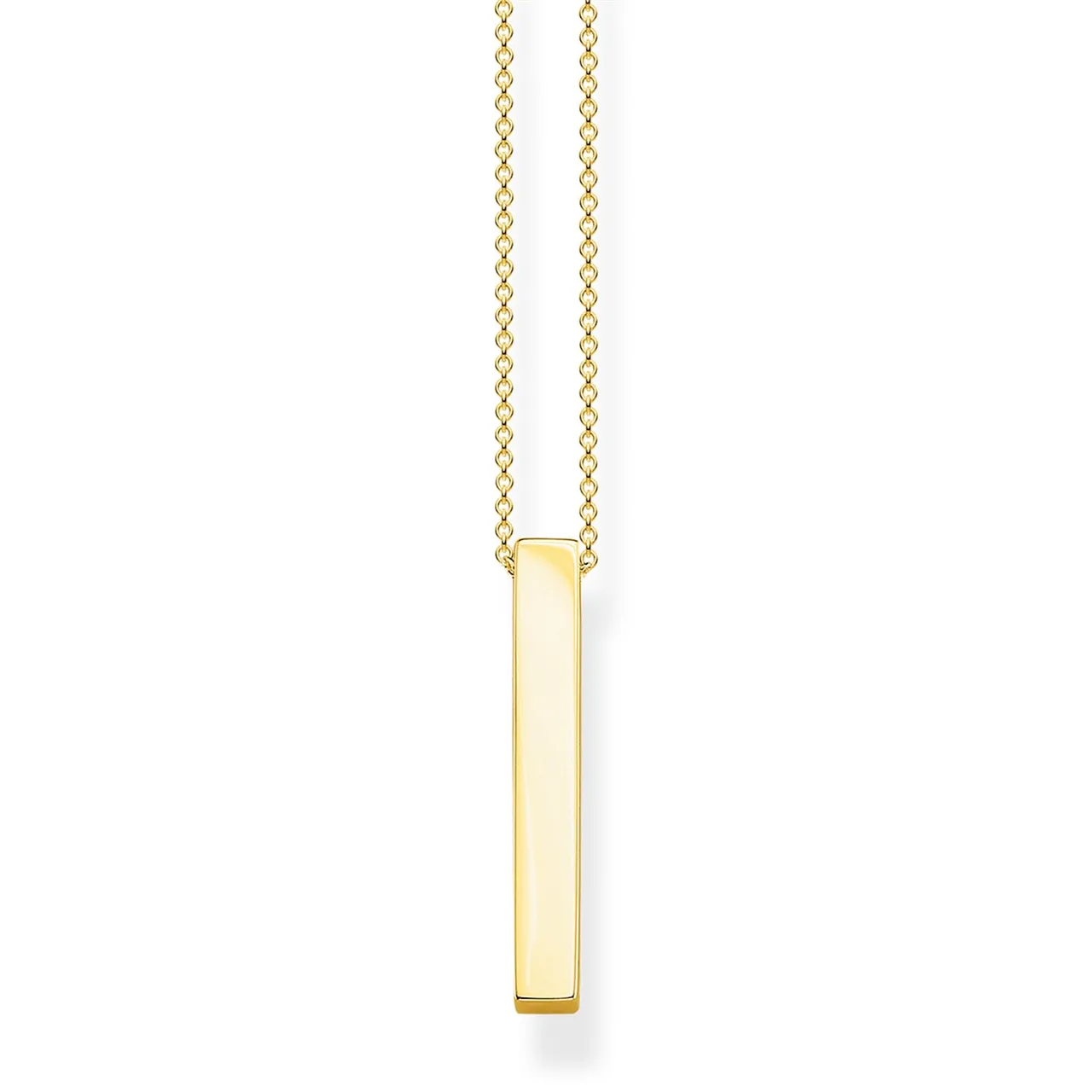 Thomas Sabo Engravalbe Bar Pendant. Sterling Silver plated in 18 Karat Yellow Gold. Includes adjustble chai to 40/42.5/45cm