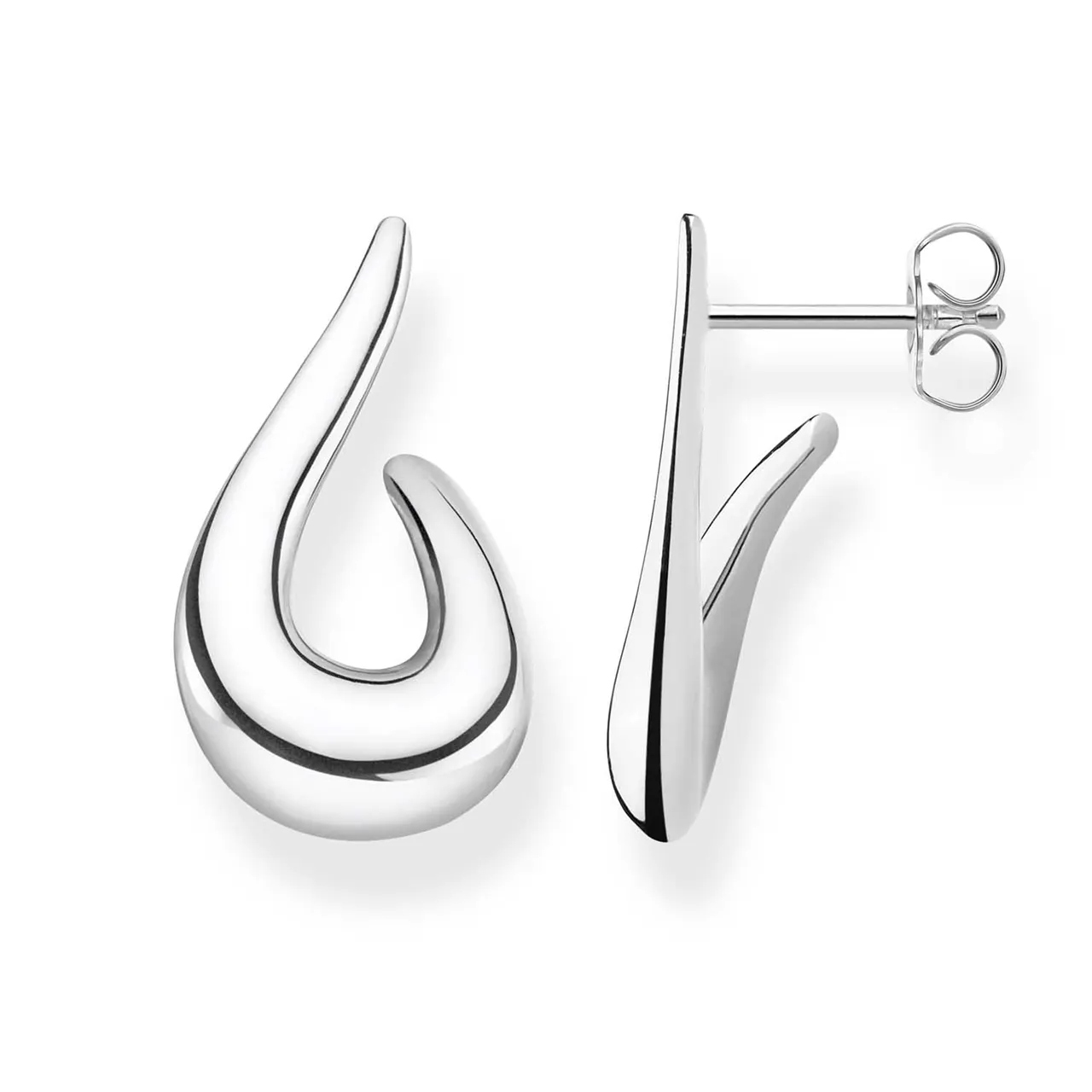Clean modern chic: The earrings of shiny polished silver and with an organic look reinterpret the iconic THOMAS SABO design of the 90s and become a piece of jewellery with a strong statement thanks to the clarity of material and form.