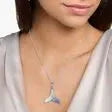 Cheerful dolphin: The necklace pendant is fashioned elaborately like the tail fin of a dolphin, made of high-quality 925 Sterling silver which has been blackened at assorted places. As a special highlight, hand-set gemstones within a colour gradient from white, over aquamarine to intensive dark blue skilfully accentuate the fin as well as the eyelet of the pendant.