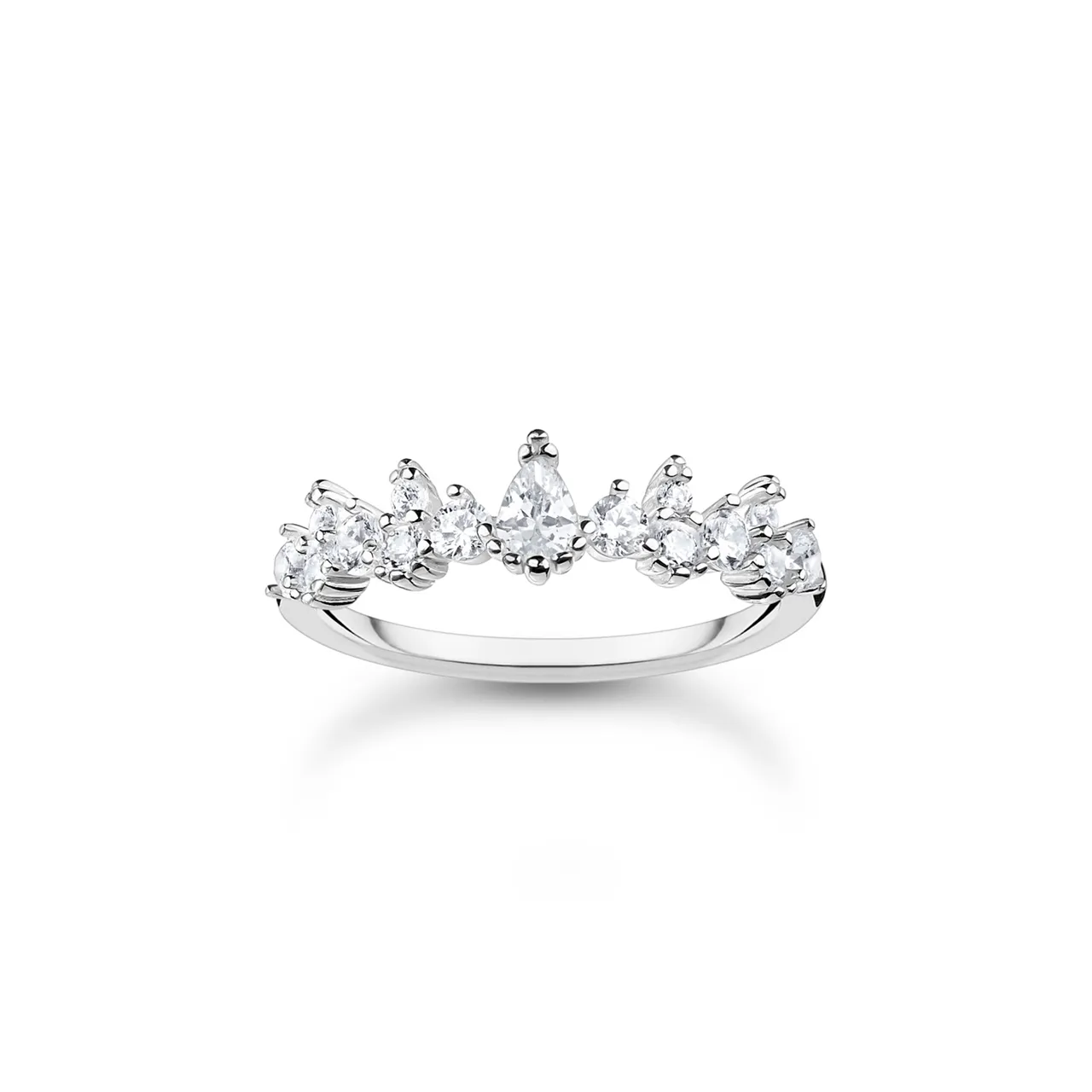 โ Filigree ring with a row of zirconia stones with varying facet cuts