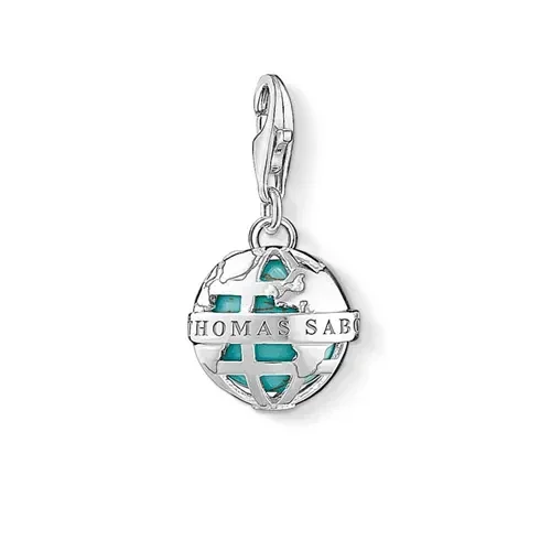 This globe charm comes from Thomas Sabo’s “Charm Club” collection. It is made from sterling silver with a synthetic turquoise centre, and has a parrot clasp for attaching to their range of bracelets and necklaces.