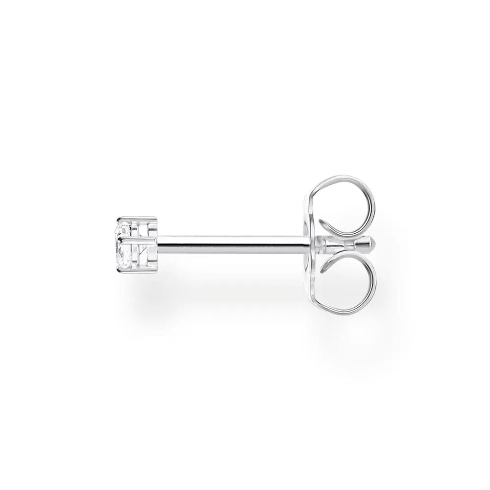 'Curated Ear' trend: The circular-shaped individually available ear stud made of 925 Sterling silver with a zirconia stone in a claw setting leaves free rein for creative combinations.