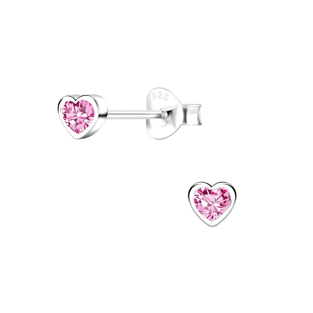 Tiny Treasure Sterling Silver Children’s Heart CZ Stud Earrings