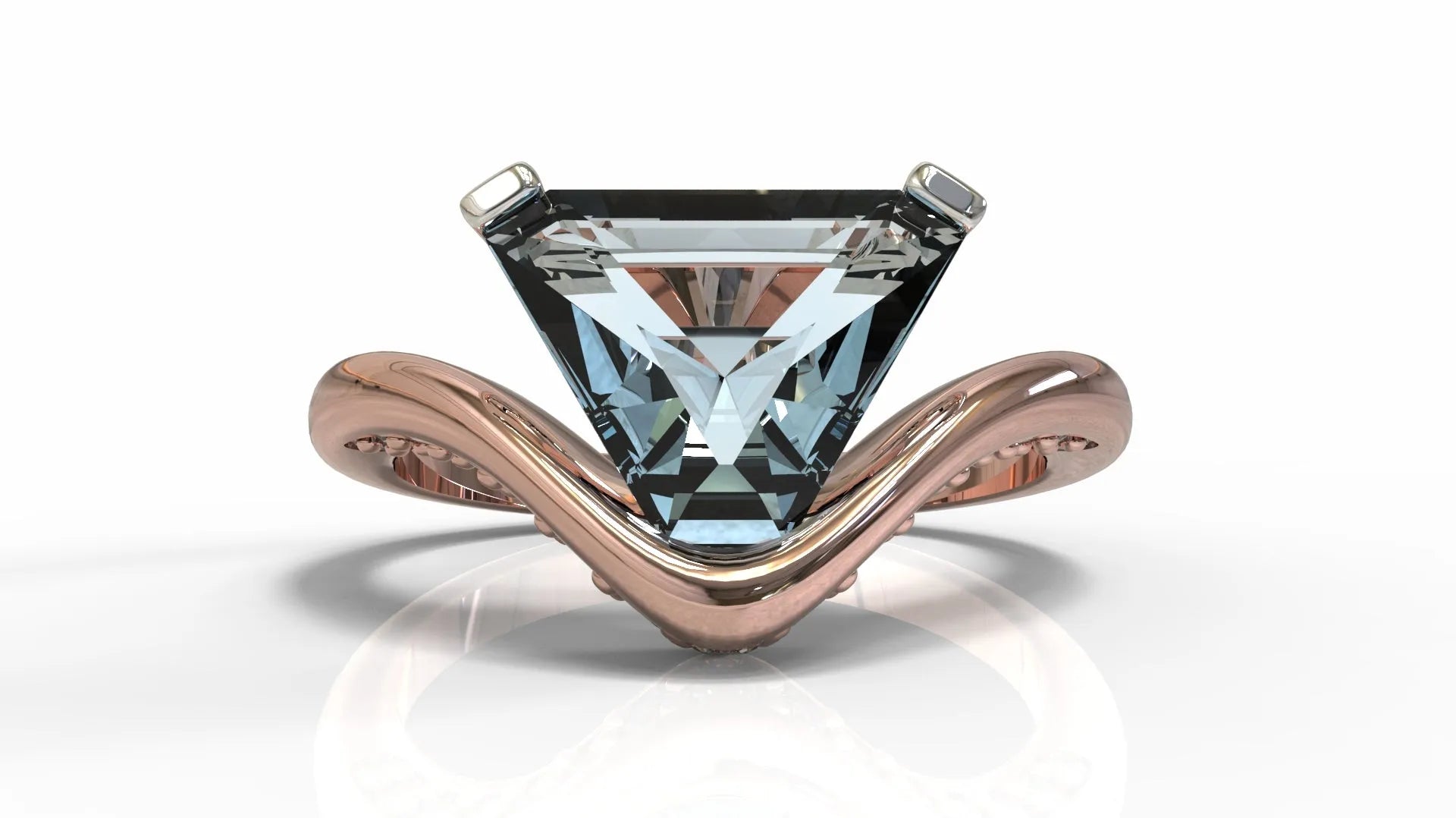 Platinum & 18 carat Rose Gold ring with Trillion Cut Sapphire & Diamonds