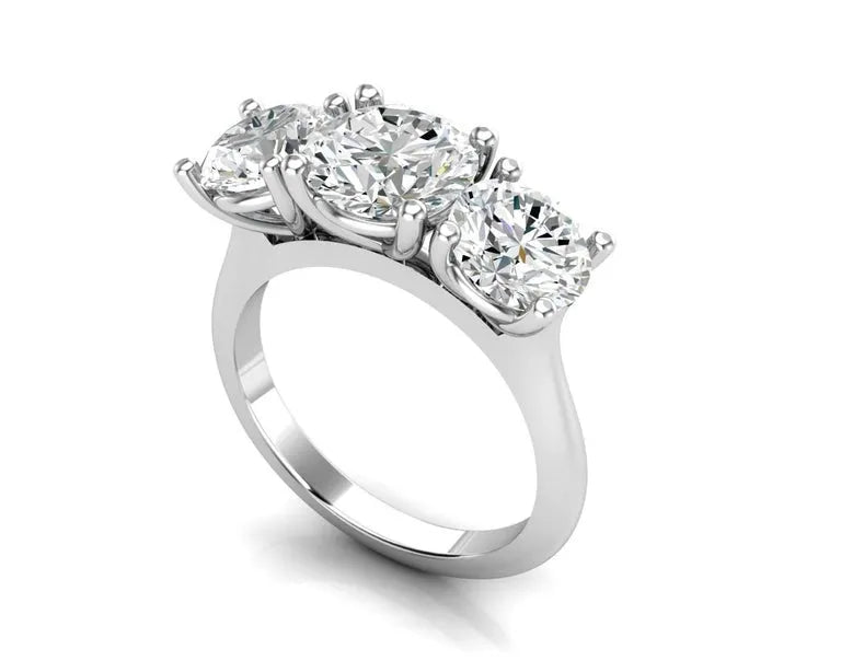 This beautiful ring has been set with a trio of diamonds. Simple, elegant and timeless.Â