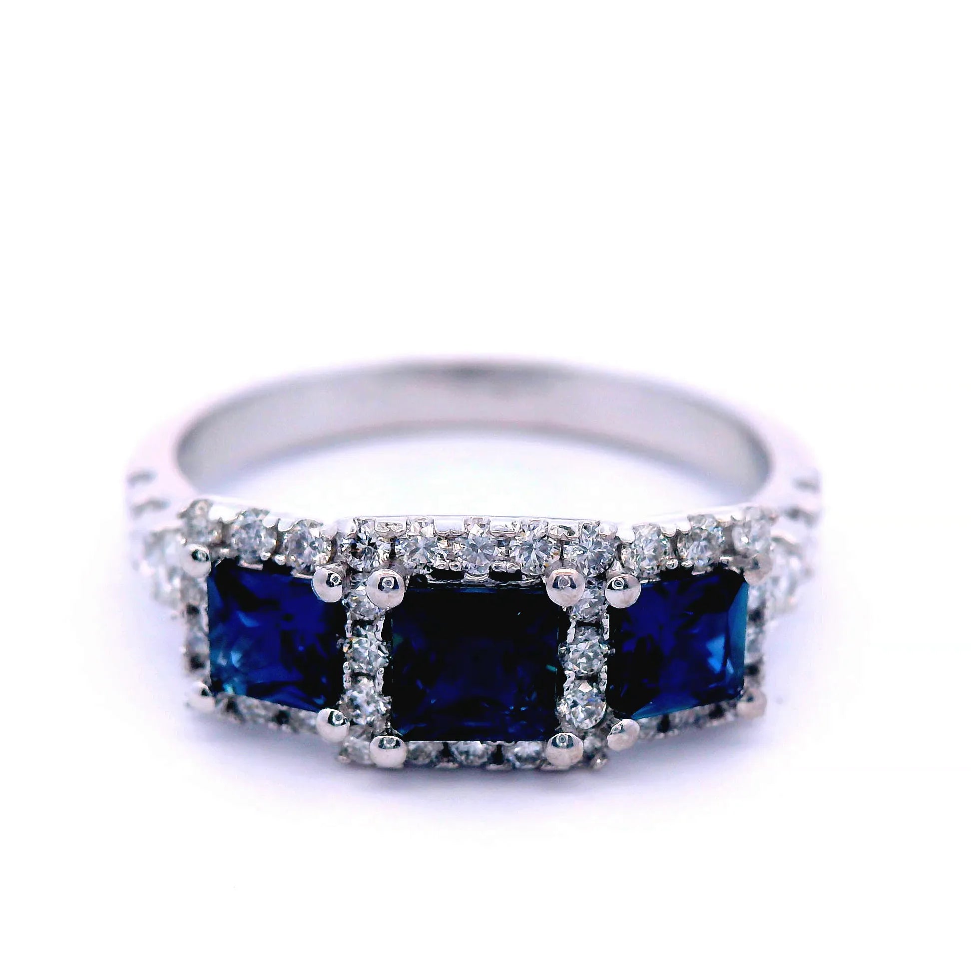 18 CARAT W/G 3 X SAPH=.56CT DIA =.56CT DRESS RING