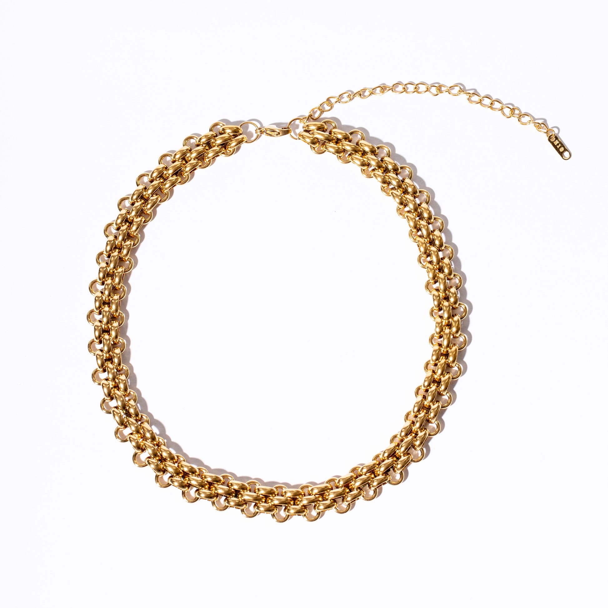 This piece sits beautifully high around the neck. It has a weight to it just as solid gold does, but it is pure comfort to wear via the clever craftsmanship. Over a jumper or straight on the skin with a bikini or dress. It is not brassy. It is pure class and you will feel a million dollars. For a truly European finish, add our Vintage Panther Bracelet.