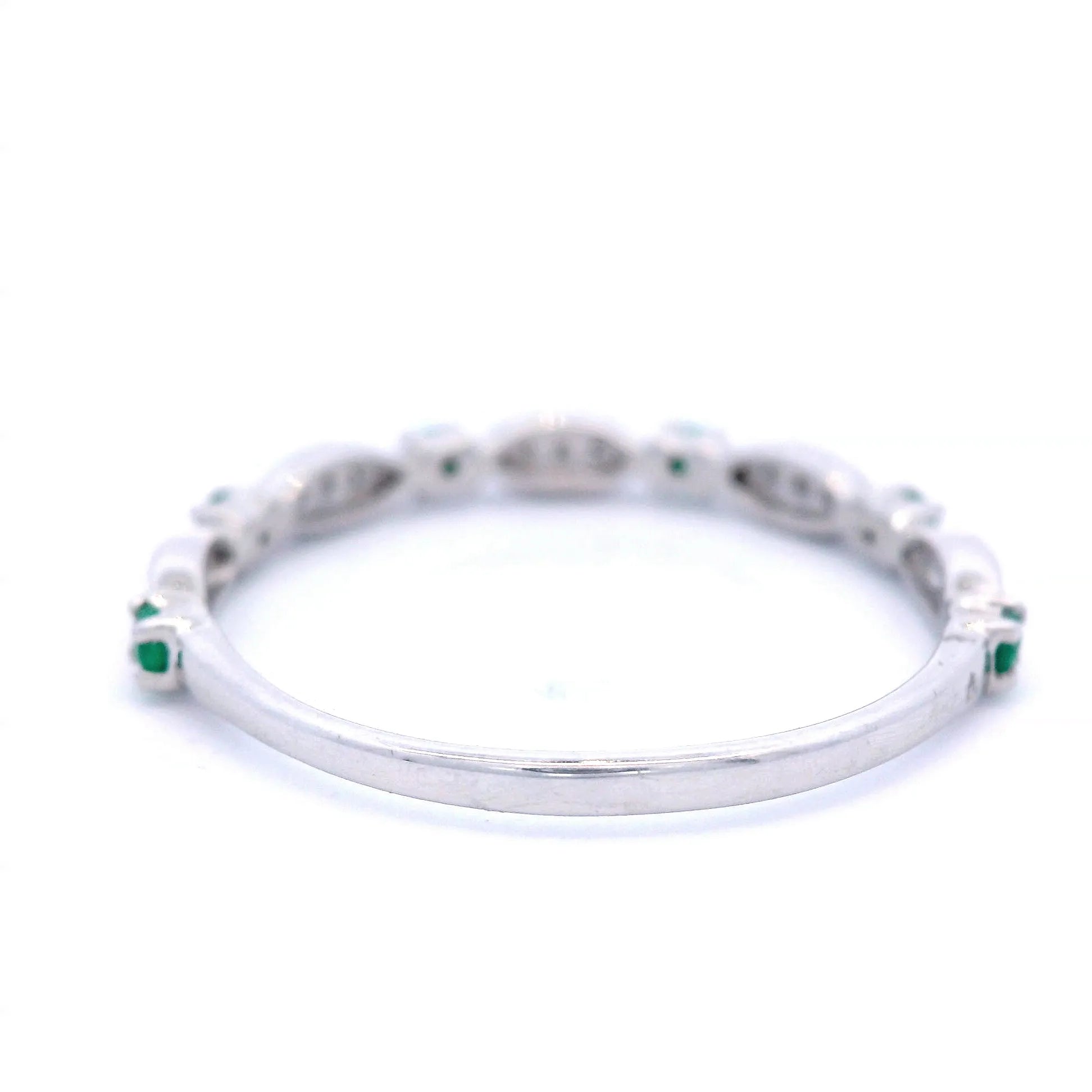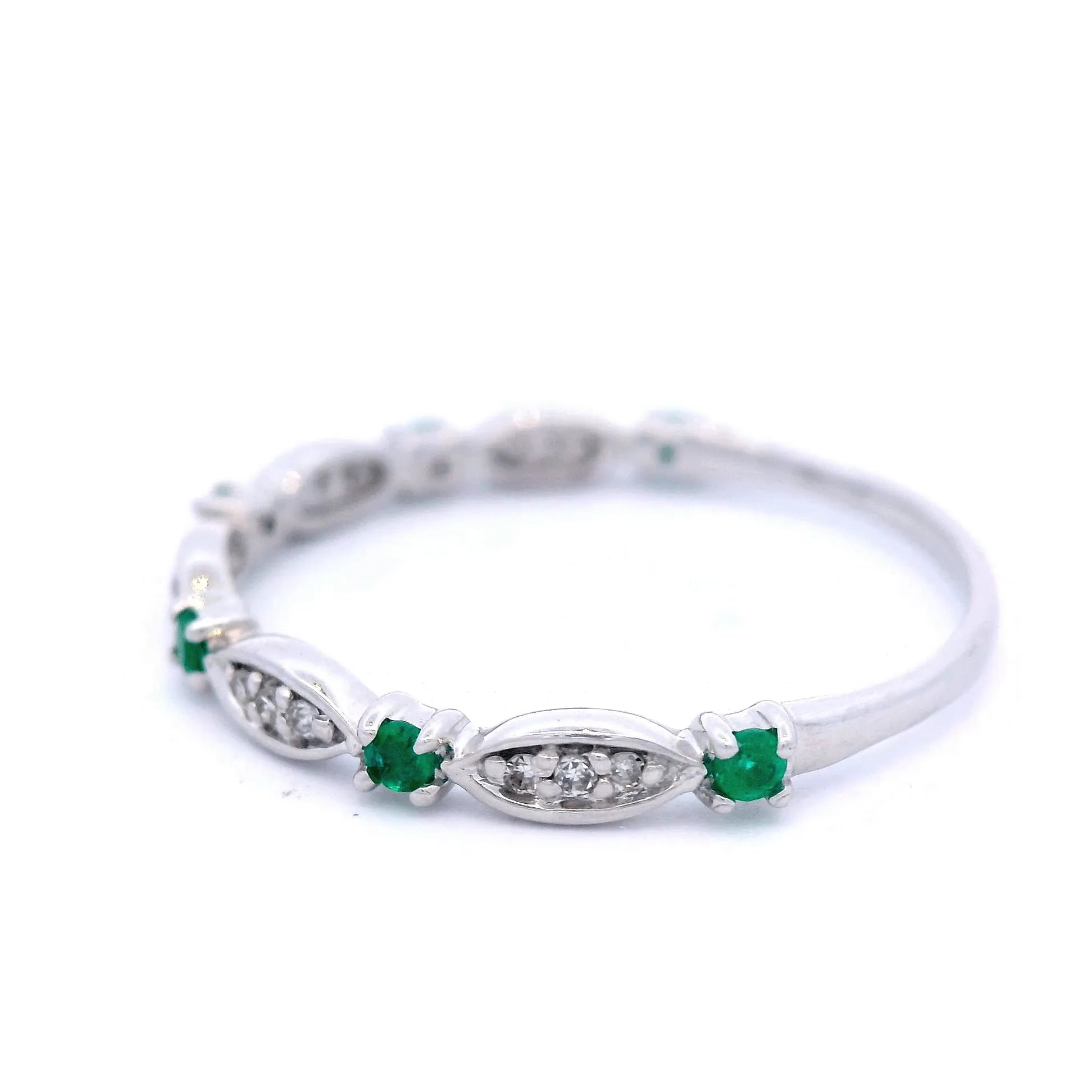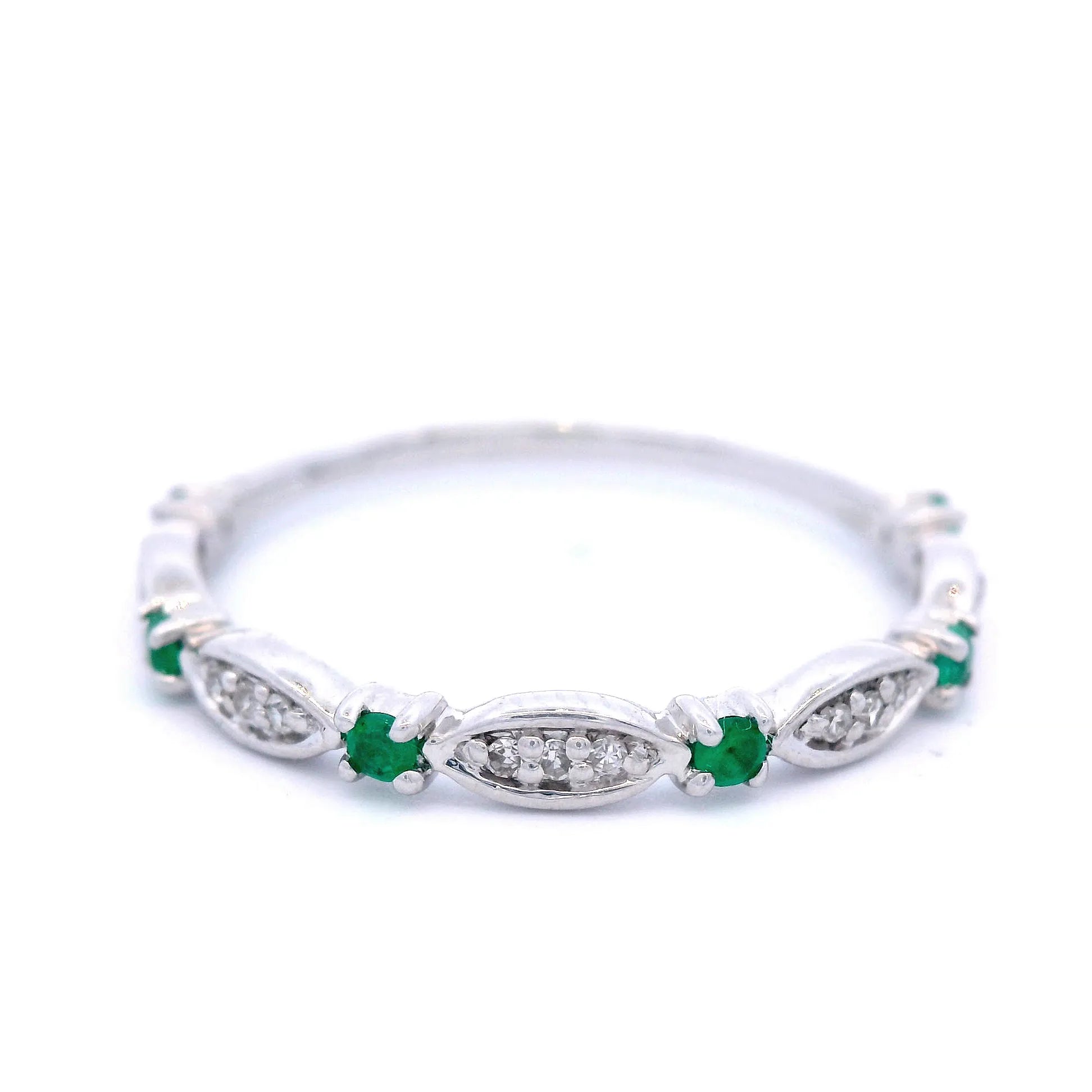 9 Carat White Gold Diamond and Emerald Stacker Dress Ring