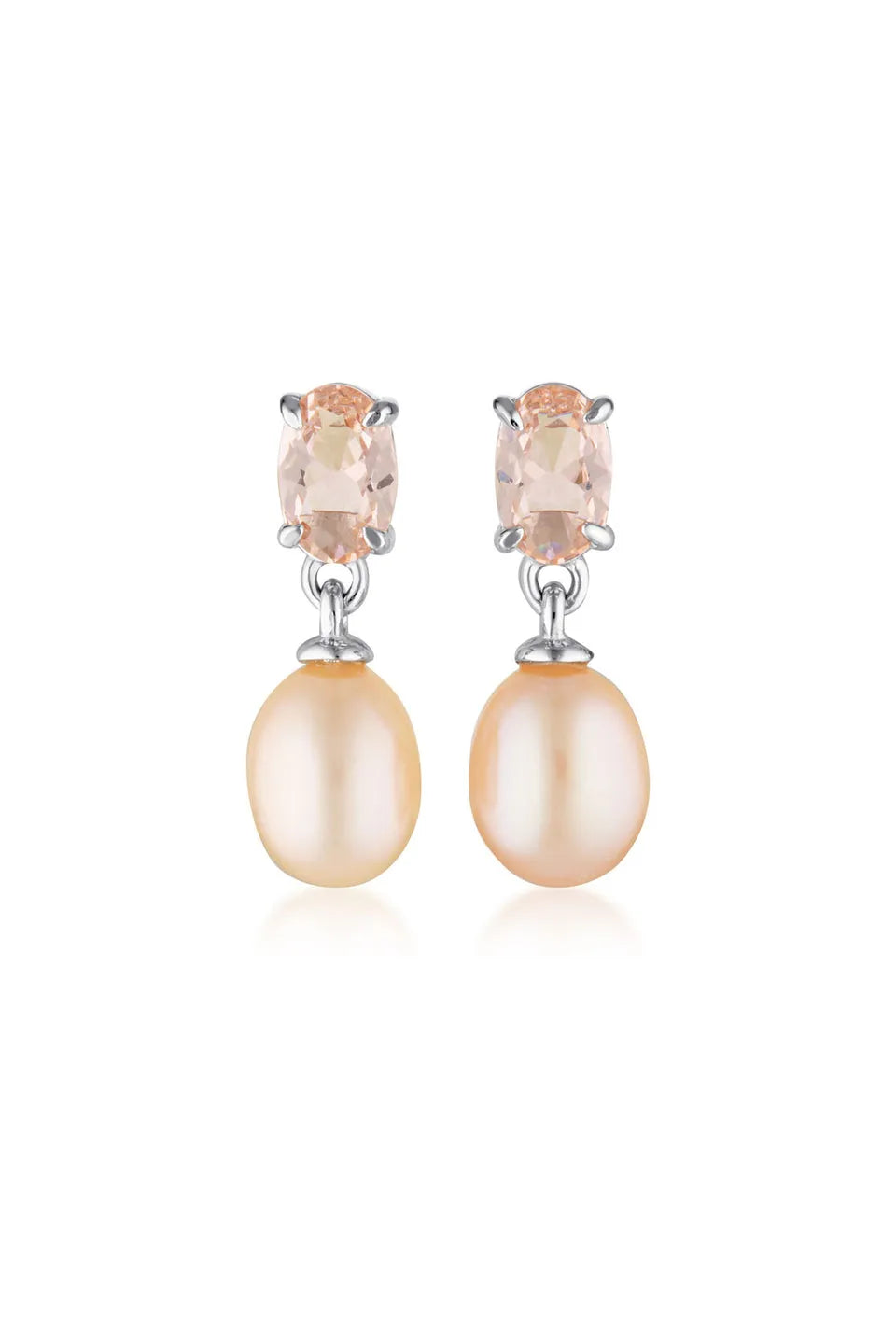 A graceful blend of romance and refinement, these earrings pair soft pink freshwater pearls with sparkling morganite cubic zirconia. Crafted in rhodium-plated 925 sterling silver, they’re an elegant addition to any jewellery collection.