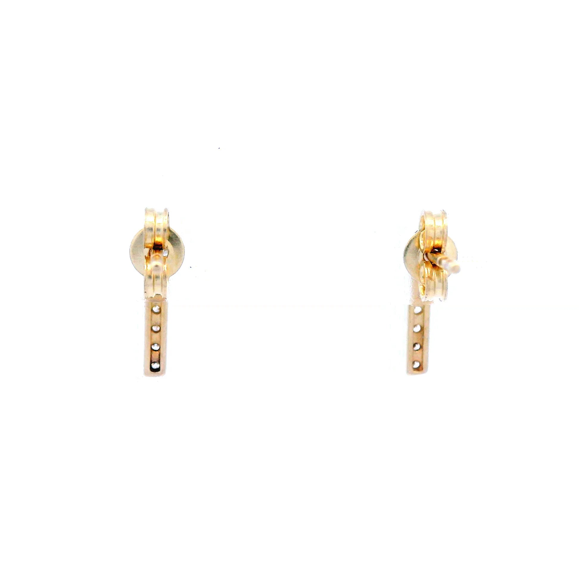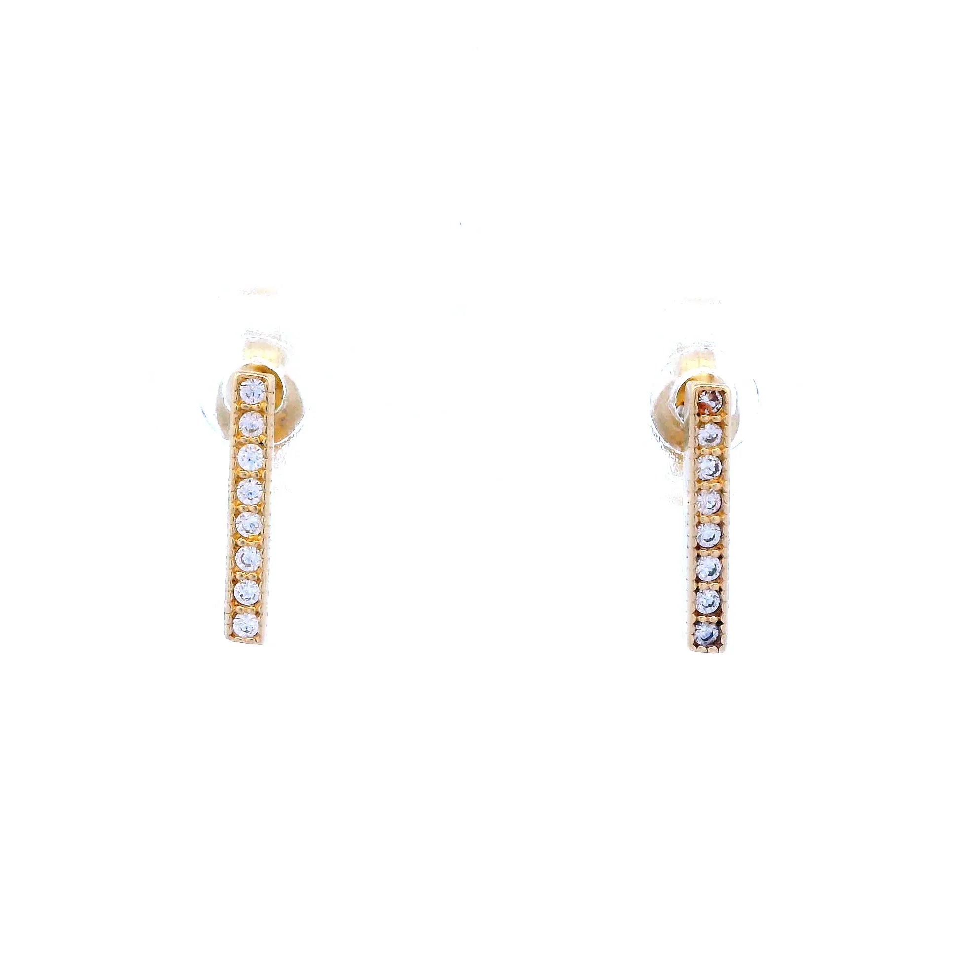 Yellow Gold Bar Earrings with Cubic Zirconia