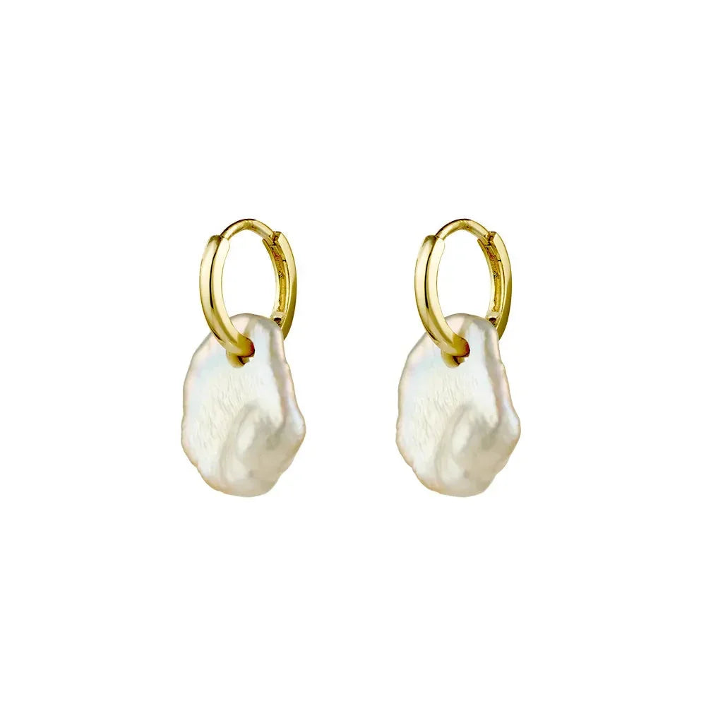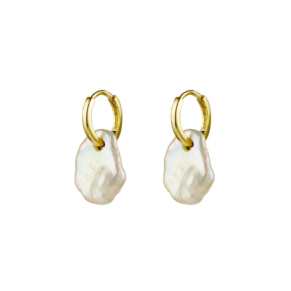 Yellow Gold Plated Plain 11mm Hoop With Fresh Water Pearl Bead