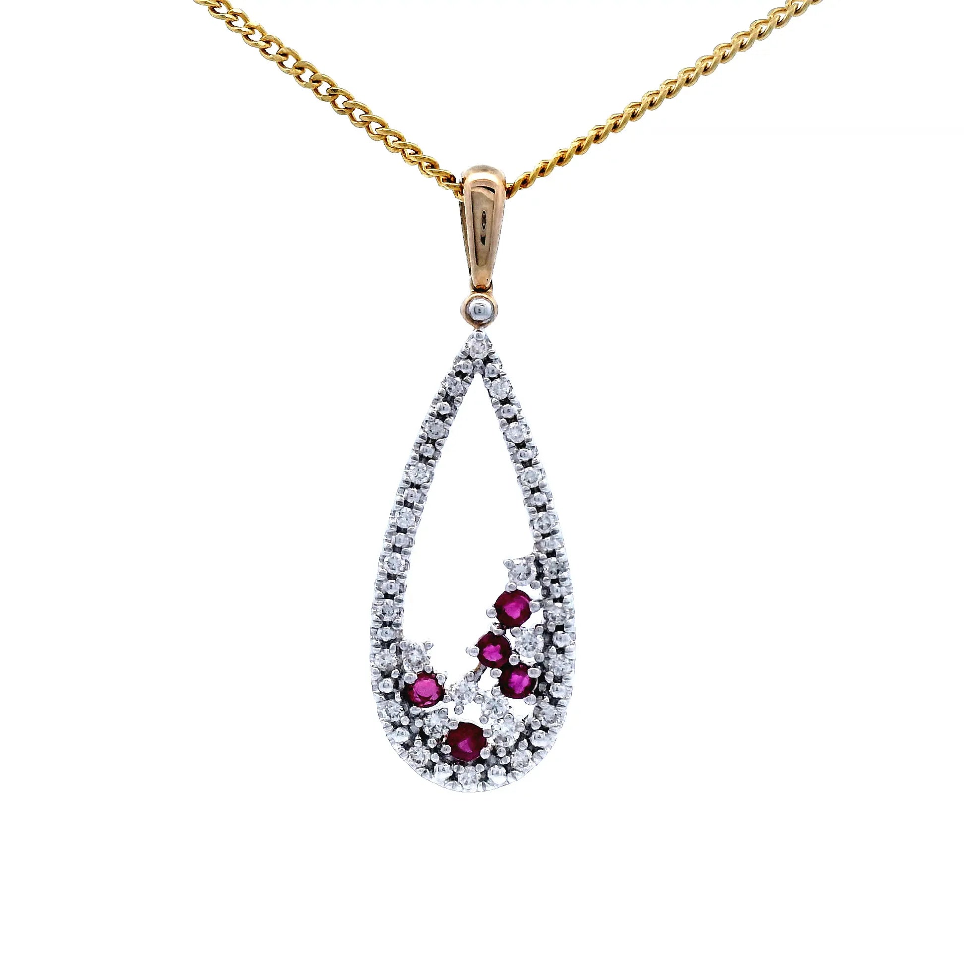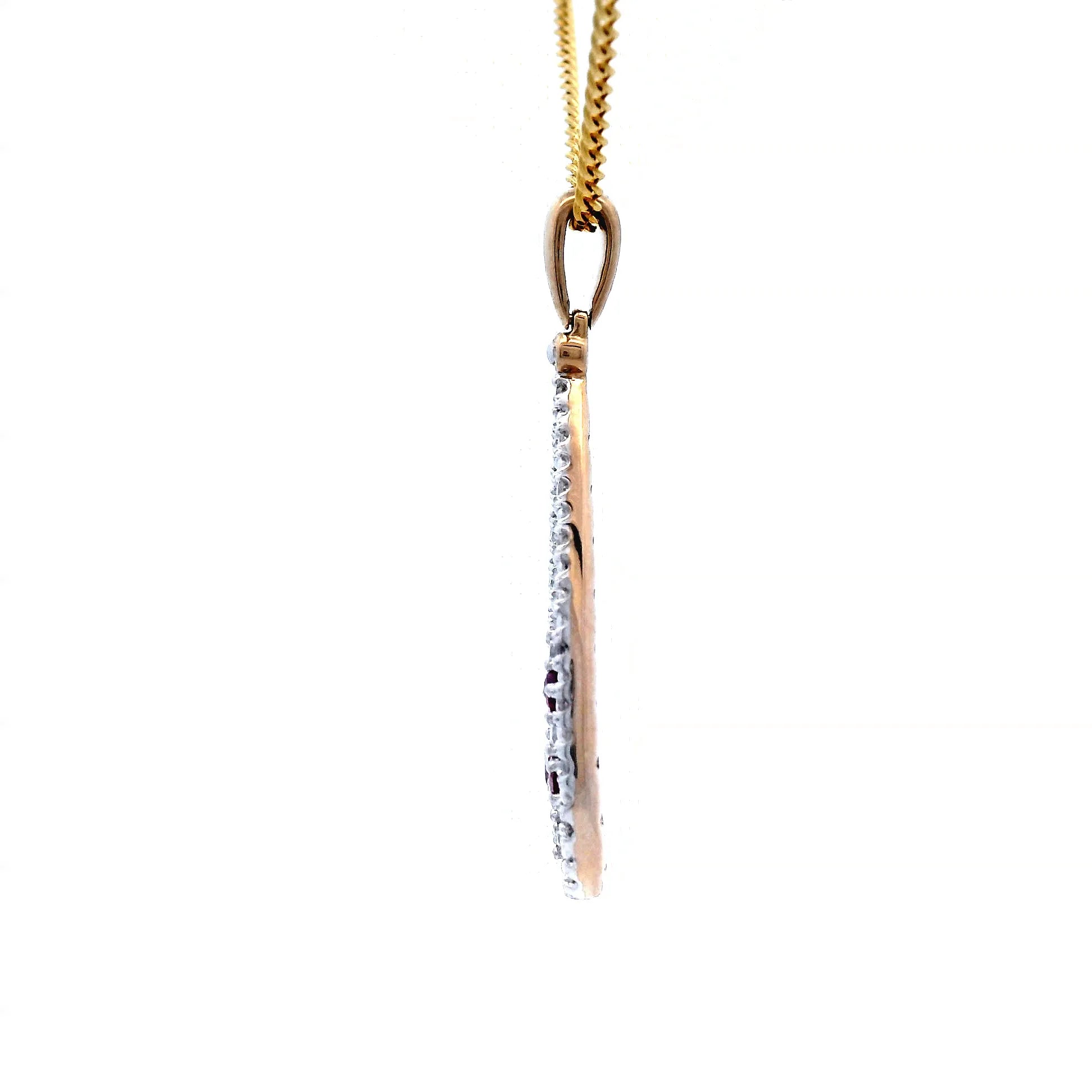 9 Carat Yellow Gold Rhodium Plated Top Ruby And Diamond Pendant
