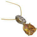 This unique handmade Platinum & 18ct yellow gold pendant features a beautiful yellow zircon suspended from a diamond set platinum bail. This pendant is suspended from an 18 carat link chain.